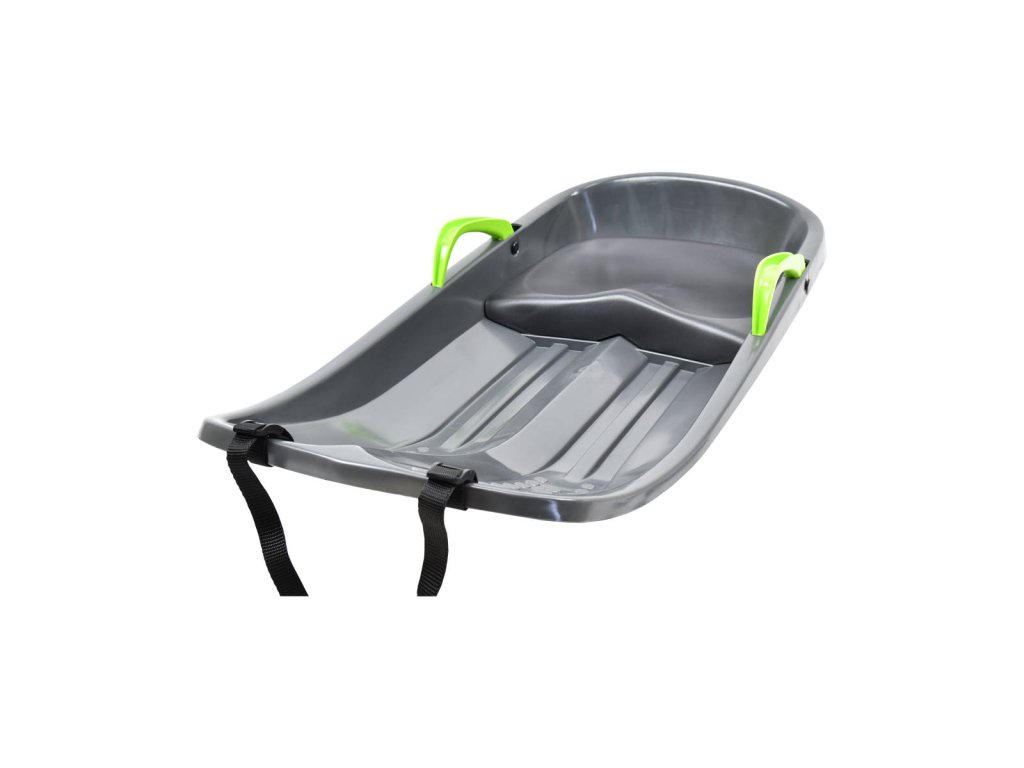 Tradiční jednomístný plastový bob pro děti na sníh, z plastu ve světle zelené barvě, s vestavěným sedátkem, které lépe chrání dítě před chladem, vynikající praktickým tvarem a velmi pevnou konstrukcí.