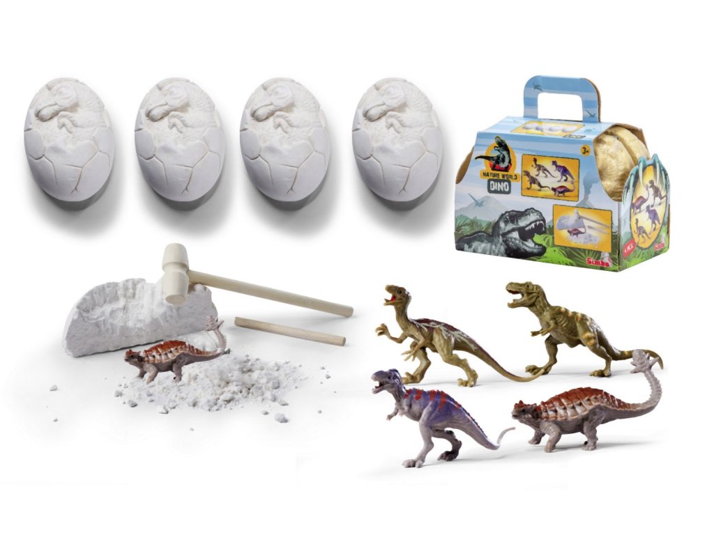 Sada na vykopání figurky dinosaura ukrytého ve vajíčku o velikosti 10 cm. 4 druhy dinosaurů o velikosti 8-9 cm. Součástí je nářadí na vykopávání.