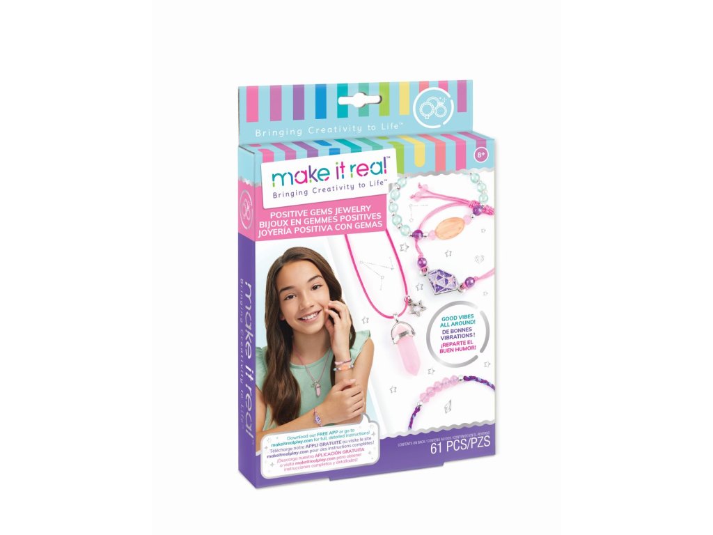 Dobrá nálada je všude kolem nás! V této sadě, která obsahuje komponenty pro výrobu náhrdelníku a 3 náramků, se kombinují korálky ve tvaru křišťálu pro příjemnou atmosféru. Věk od 8+.