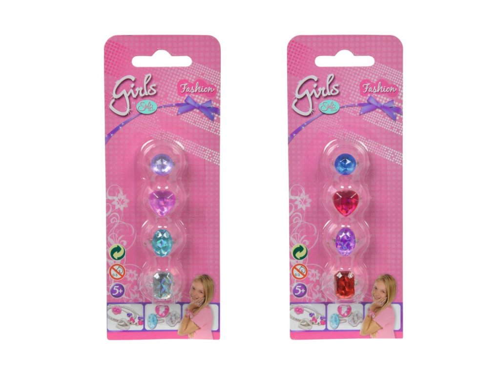 Sada prstýnků s "diamantem" pro holčičky. V sadě 4 ks různých tvarů a barev.