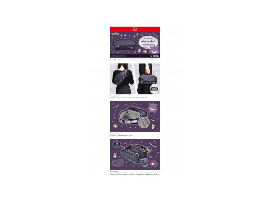 Měj své herní nezbytnosti vždy po ruce s HORI Adventure Pack Gengar and Mimikyu pro Nintendo Switch™ 2. Stylová cross-body taška s nastavitelným ramenním popruhem pojme tvůj Nintendo Switch 2 systém v hlavní kapse a oblíbené příslušenství v přední kapse. Díky inovativnímu designu ji lze nosit i v ruce. Taška se pyšní motivy Gengara a Mimikyu ze série Pokémon. Kompatibilní s Nintendo Switch 2, Nintendo Switch, Nintendo Switch Lite a Nintendo Switch – OLED Model. Oficiálně licencováno společnostmi Nintendo® a The Pokémon Company International.