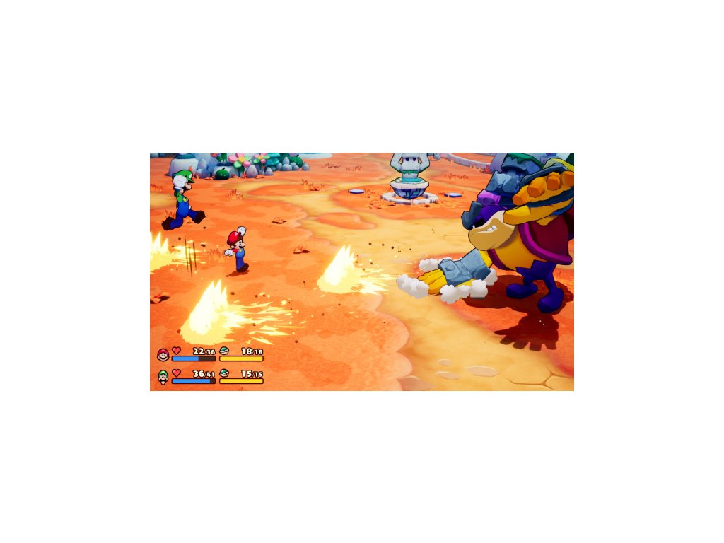 Ať už při průzkumu nebo v zápalu boje, Mario Bros. vždy pracují jako tým! Ovládejte Maria i Luigiho současně a používejte tlačítka určená pro každého z bratrů ke skokům, útokům, úskokům a dalším aktivitám.