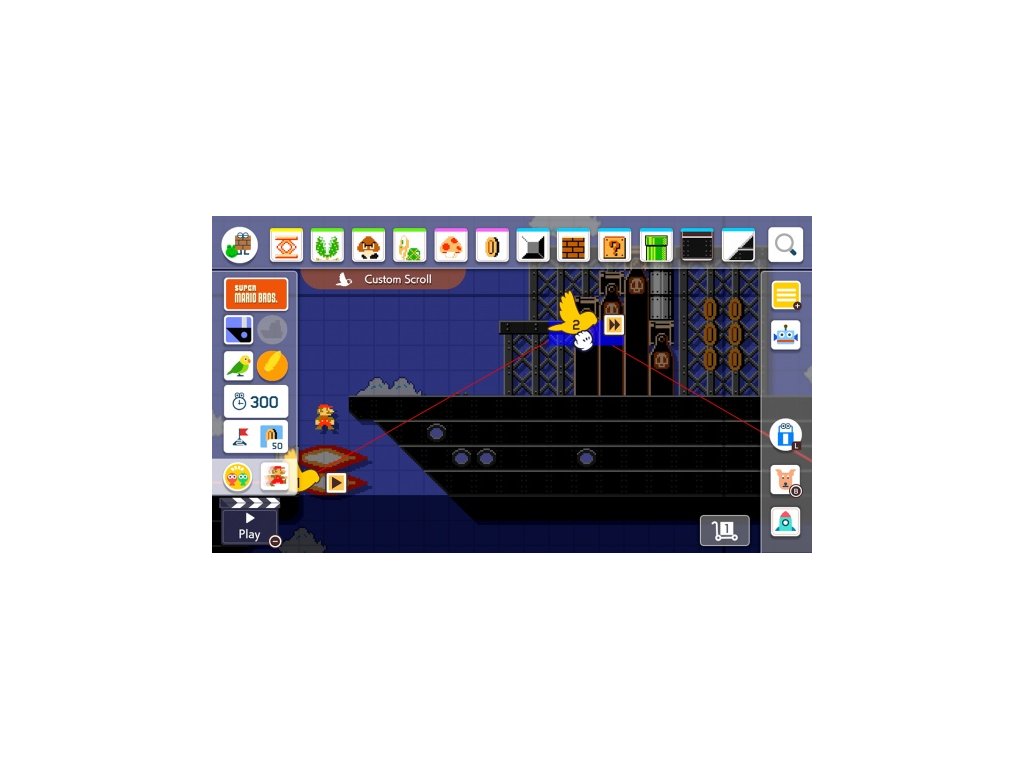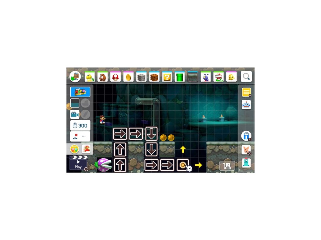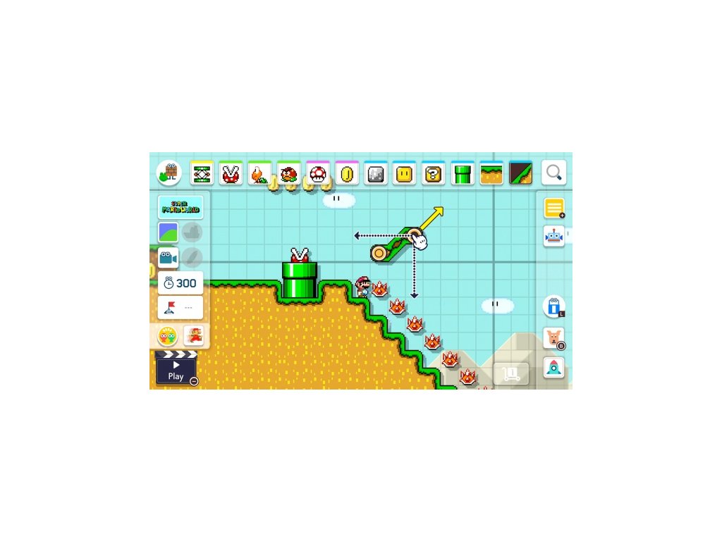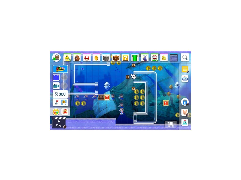 Vytvářet své vlastní Super Mario úrovně je snadné, nyní navíc mohou na tvorbě spolupracovat dva hráči na jedné obrazovce. Jednoduše si vyberte ikonické objekty a nepřátele a umístěte je kamkoliv chcete. Vybrat si můžete z několika různých prostředí a stylů Super Mario her - nově se do této nabídky přidává i styl Super Mario 3D World! Dokonce můžete zkombinovat známé elementy a stvořit tak věci, se kterými se Mario dosud nesetkal.