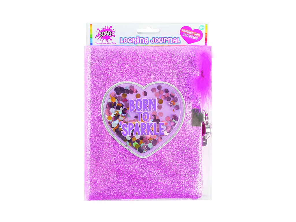 Deník se třpytivými a tvrdými deskami. Obsahuje 160 barevných stránek, pero s pírkem a zámek s klíčky. Vhodné od 6 let.