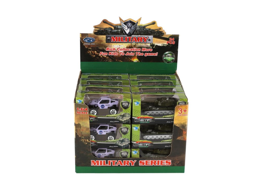 Tank/Auto vojenské/Obrněný transportér kov 7cm mix druhů 24ks v boxu