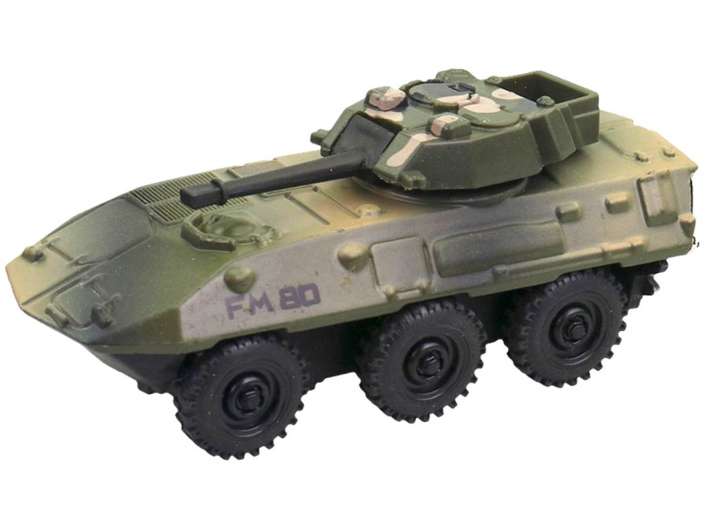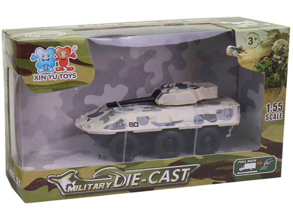 Tank z kovu a plastu, obrněné vojenské vozidlo s pohonem na zpětný chod, 3 varianty provedení. 1:55.