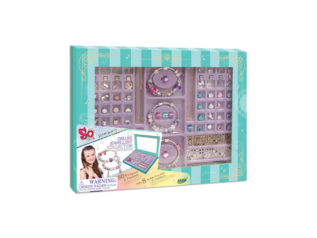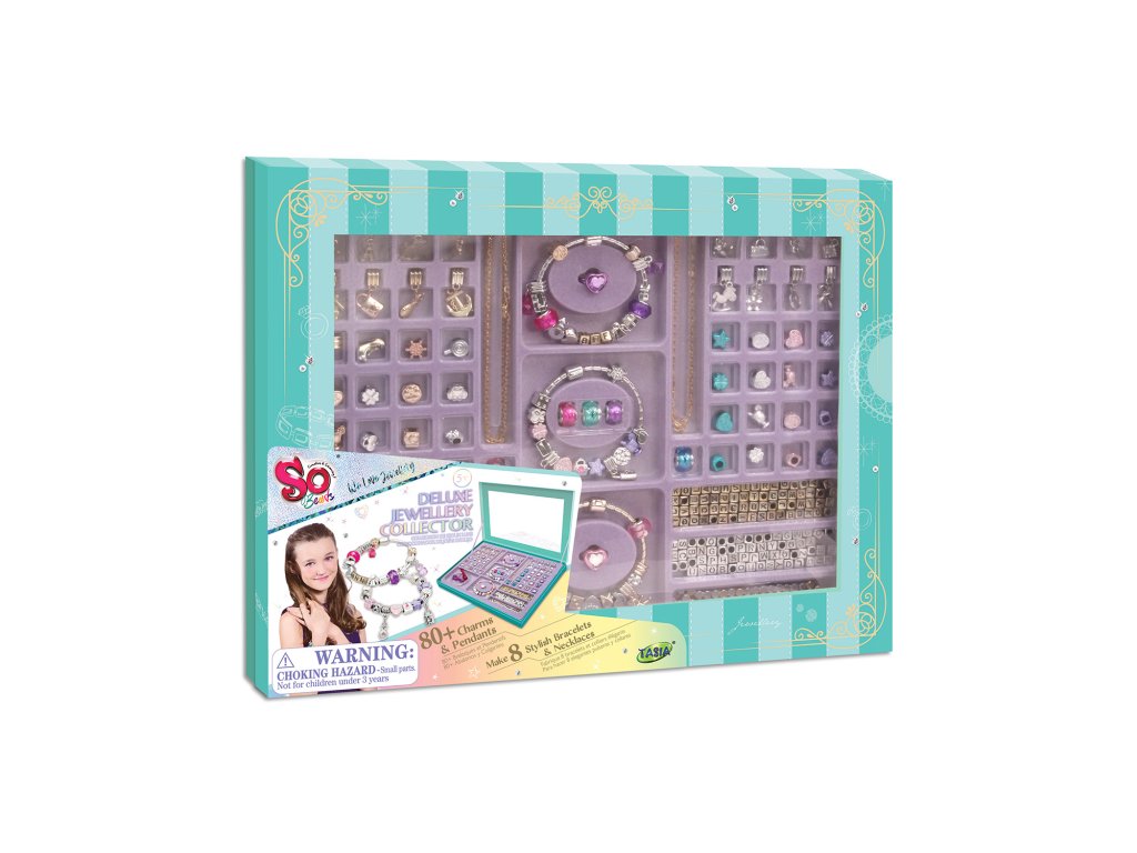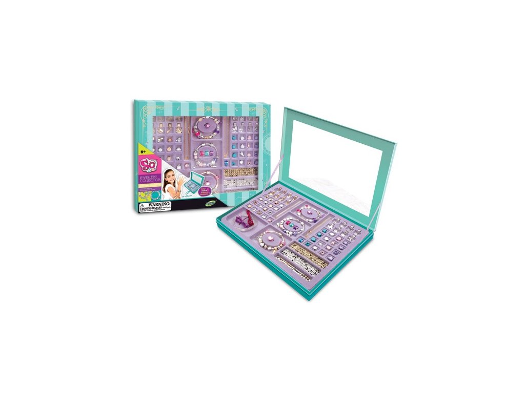 Luxusní sada šperků s různými přívěsky je vhodná pro děti od 6 let. Výstavní šperkovnice s více než 100 kusy: přívěsky, přívěsky, korálky s písmeny, náramky, prsteny... Vše pro navrhování personalizovaných doplňků a překvapení přátel. Obsahuje jednoduchý návod se spoustou nápadů. Tato hračka podporuje manuální zručnost a kreativitu