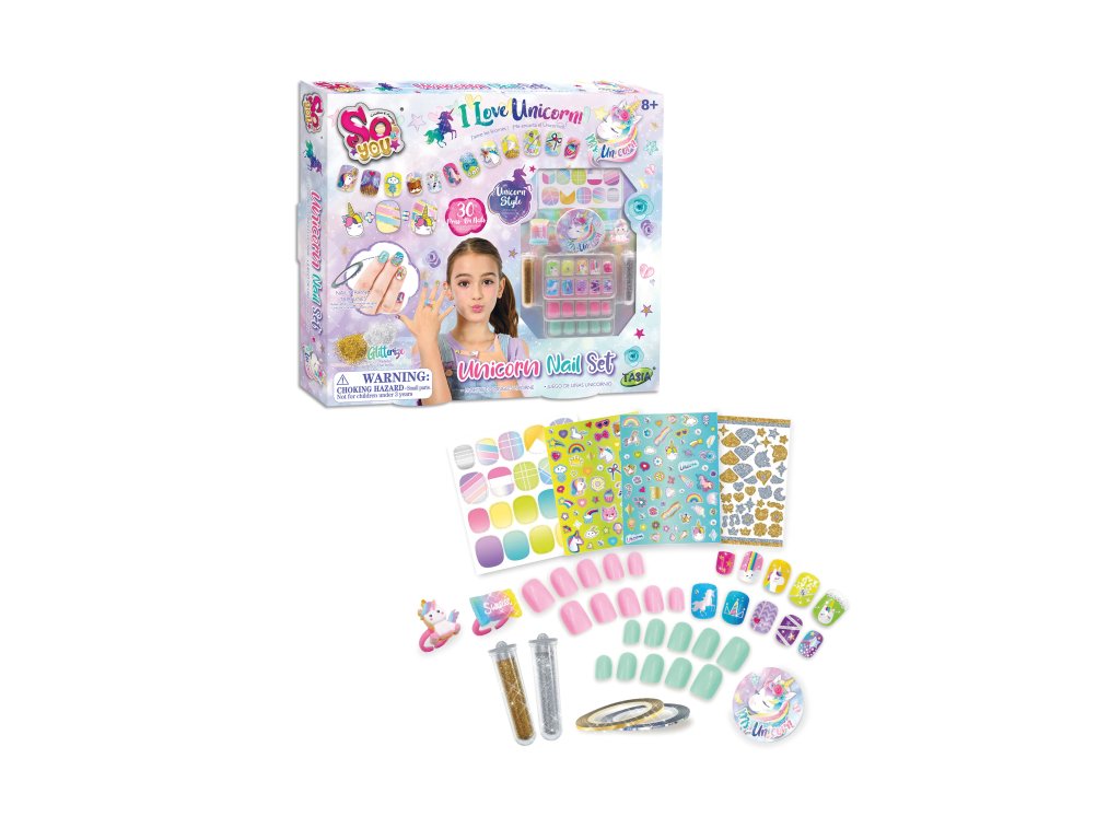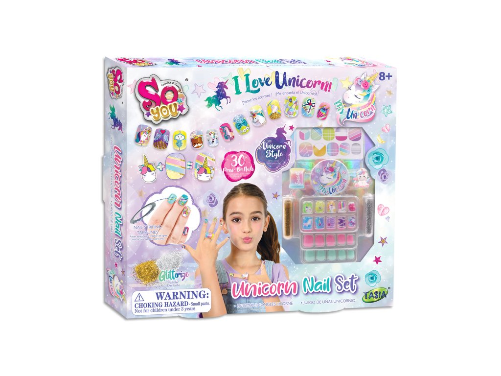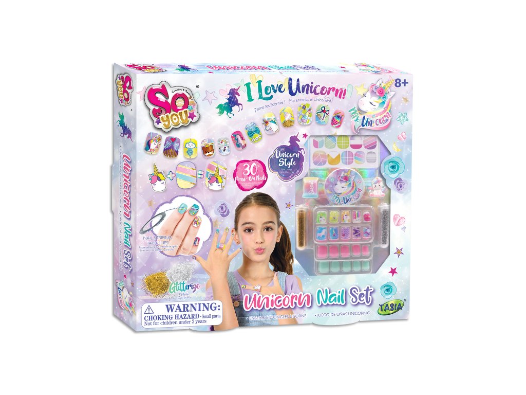 TASIA - Sada 30 nalepovacích nehtů s jednorožcem a glitry