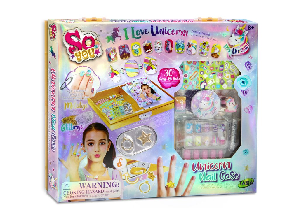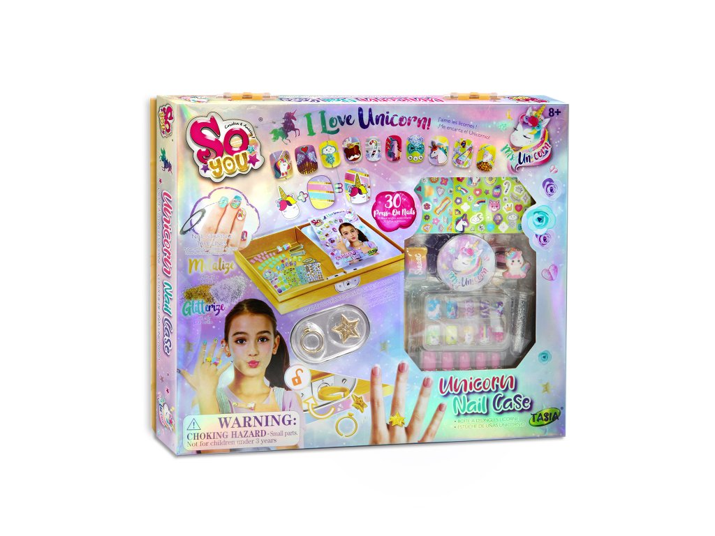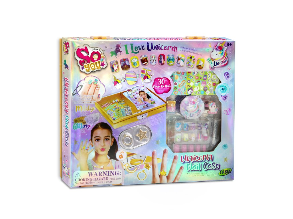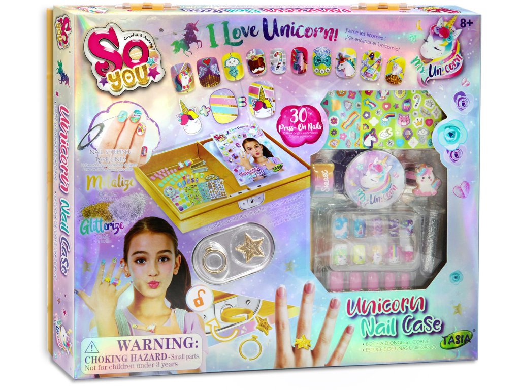 TASIA - Sada 30 nalepovacích nehtů s jednorožcem a třpytkami