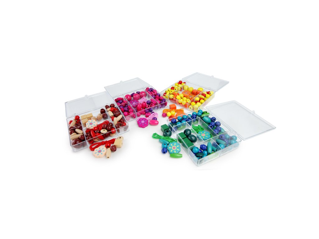 Malá výtvarná sada s barevnými korálky pro dívky. Podporuje fantazii a výtvarný talent dítěte. Sada obsahuje paletu plnou nejrůznějších korálků, bavlnky, šperkařské komponenty. Korálky v sadě jsou dřevěné. - Rozměry balení: 11x10x3cm - Věk 5+ - Do poznámky uveďte o jak barevnou sadu máte zájem - Uvedená cena je za kus