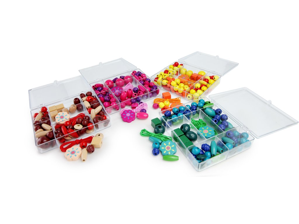 Malá výtvarná sada s barevnými korálky pro dívky. Podporuje fantazii a výtvarný talent dítěte. Sada obsahuje paletu plnou nejrůznějších korálků, bavlnky, šperkařské komponenty. Korálky v sadě jsou dřevěné. - Rozměry balení: 11x10x3cm - Věk 5+ - Do poznámky uveďte o jak barevnou sadu máte zájem - Uvedená cena je za kus