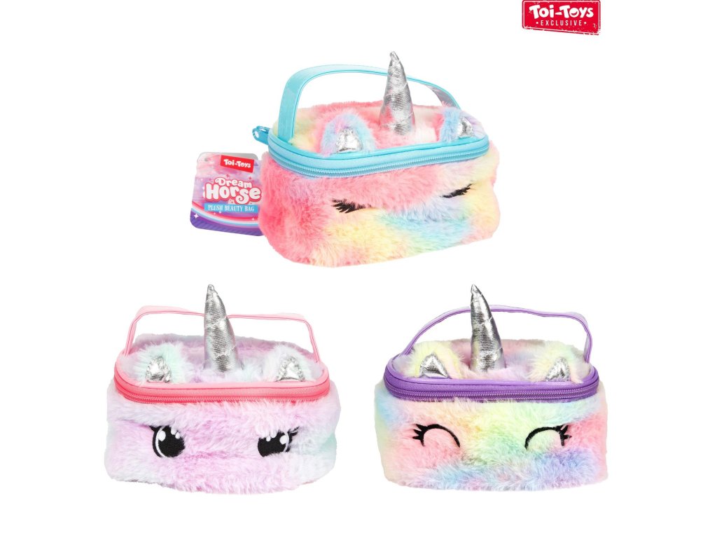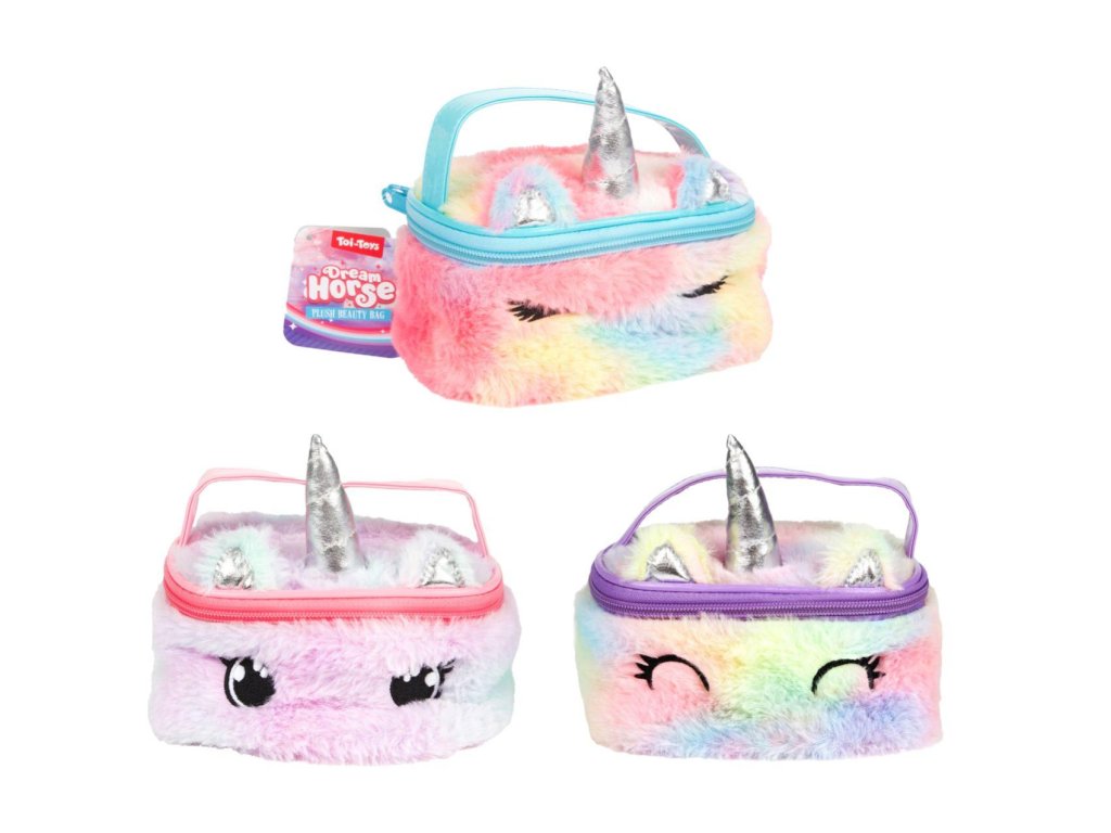 Taška kosmetická jednorožec plyšová 16x12cm 3 barvy