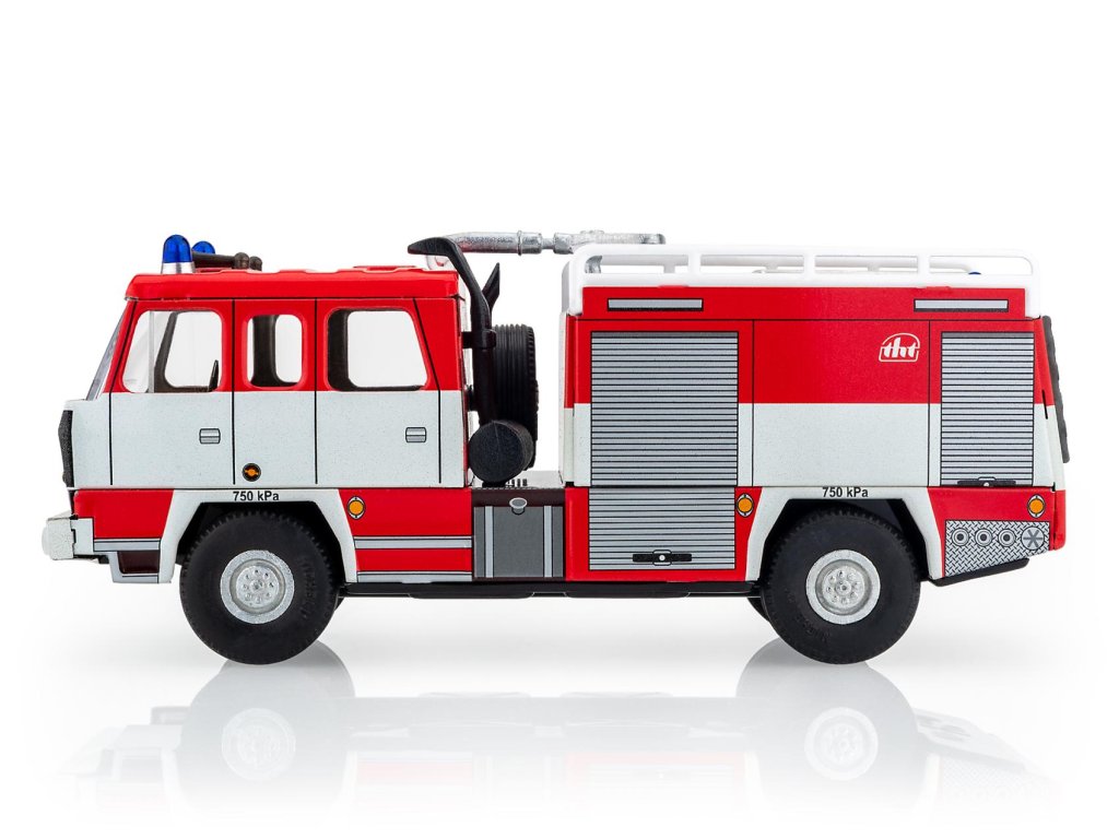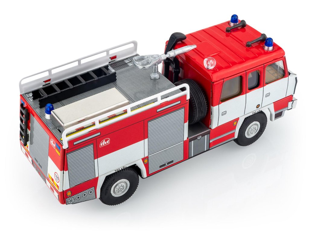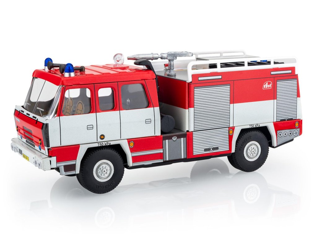 Hasičský automobil ve tvaru Tatry 815 od značky Kovap. Vraťte se svým synem nebo vnukem do dob svého dětství. Tento kovový model v měřítku 1:43 je do detailu zpracovaný včetně designu kol a kabiny. Velikost 18 cm.