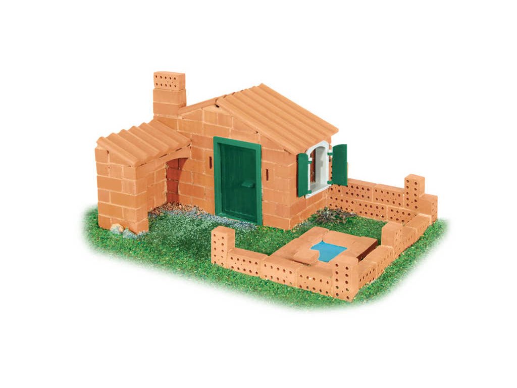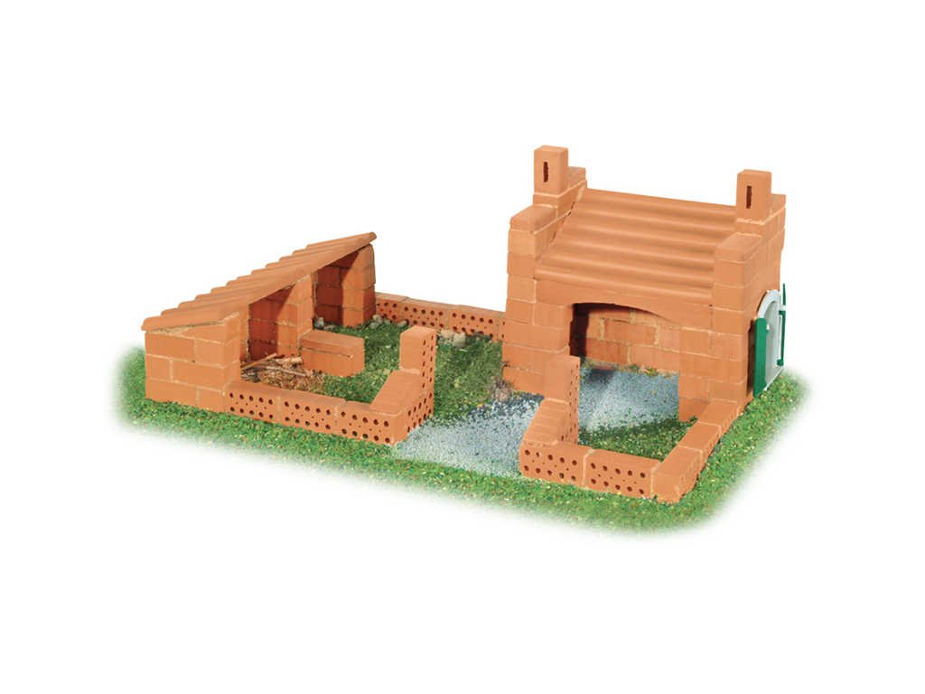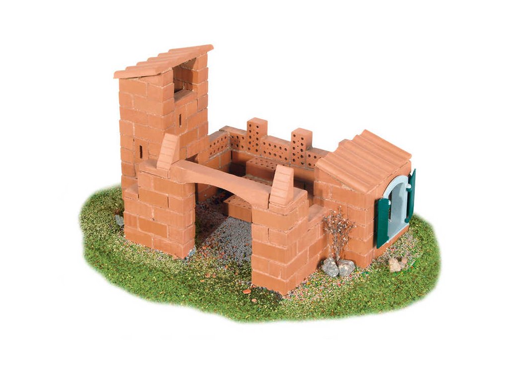 Obsah balení: 3 plánky na stavbu objektů, 150 ks dílků, pojivo (maltu), zednická lžíce, miska, podložka, cihly