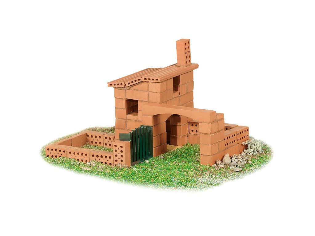 Obsah balení: 2 plánky na stavbu objektů, 79 ks dílků, pojivo (maltu), zednická lžíce, miska, podložkam cihly