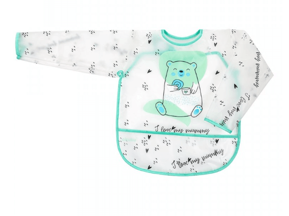 Ochrana oblečení: Bryndáky s rukávy poskytují komplexní ochranu oblečení dítěte před spadlým jídlem, omakáním a náhodnými skvrnami. Rukávy zabraňují jídlu dostat se na rukávy nebo do manžet, což usnadňuje následné čištění a udržuje oblečení v čistotě.