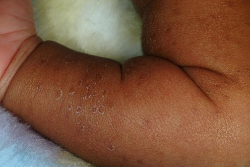 Pustulární melanóza je běžná vyrážka, která se vyvíjí u novorozenců před jejich narozením, a častěji se vyskytuje u afroamerických miminek.