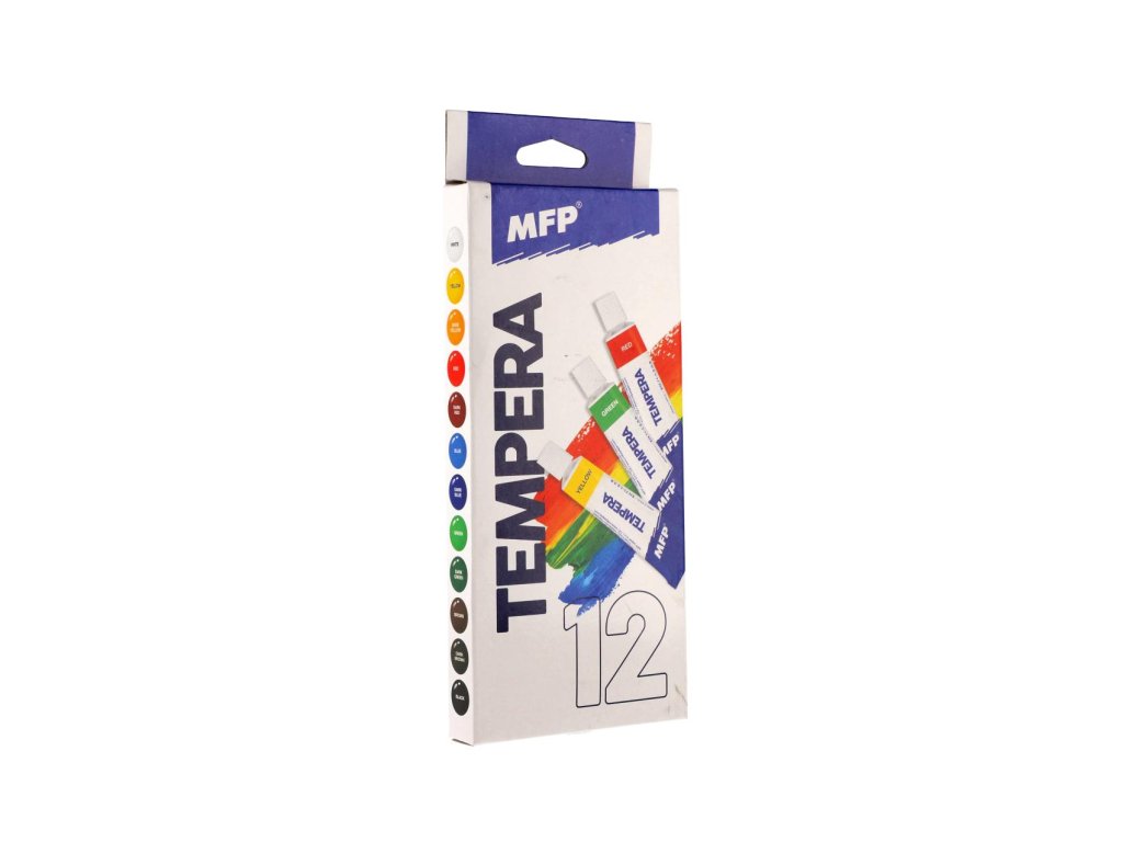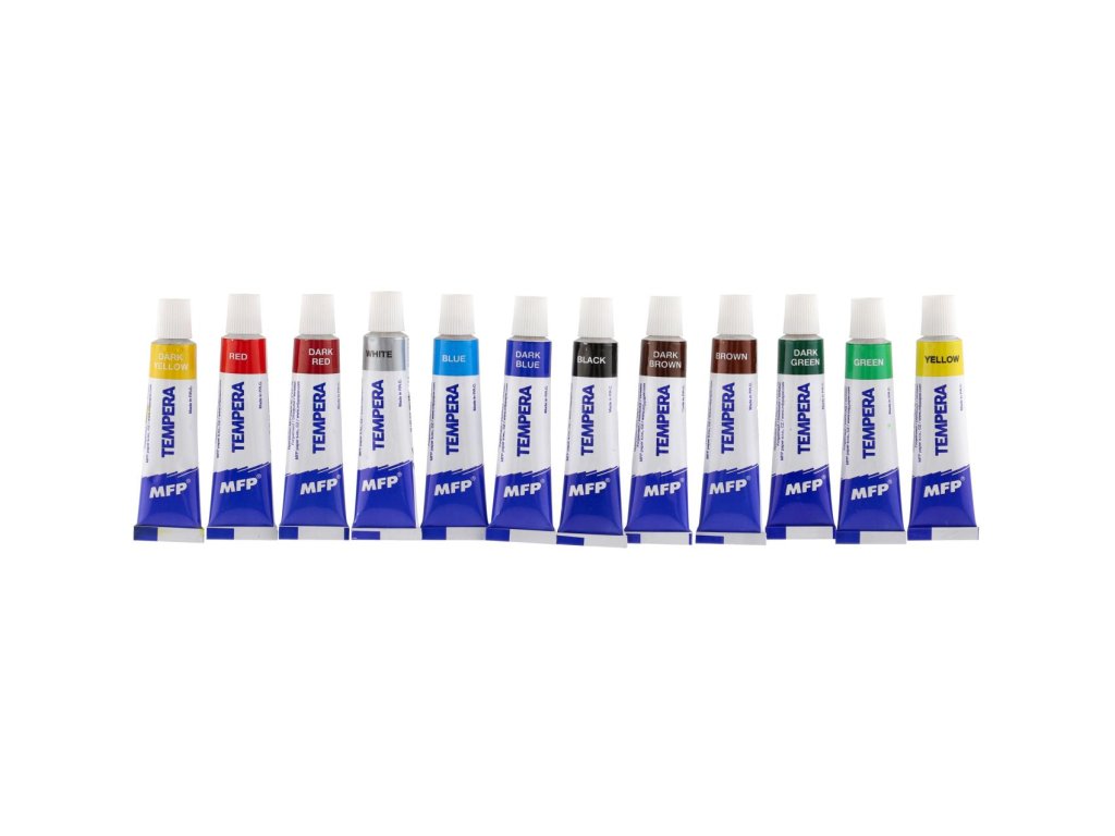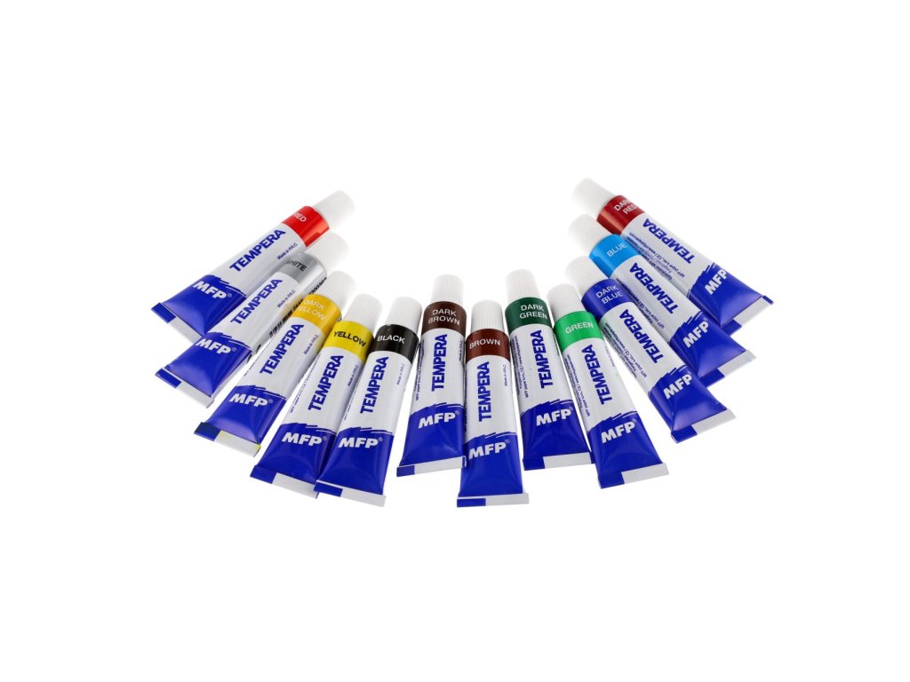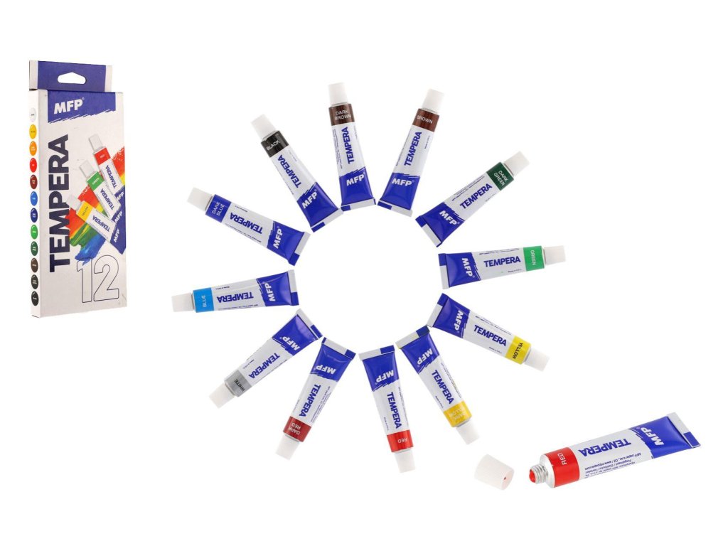 Namalujte si s dětmi obrázek pomocí temperových barev, které vynikají jasnou barevností. Děti můžou malovat štětcem, ale i prsty. Temperové barvy mají vysoké krycí vlastnosti, neobsahují žádné toxické látky. Balení obsahuje 12 odstínů, každá barva má 12ml.