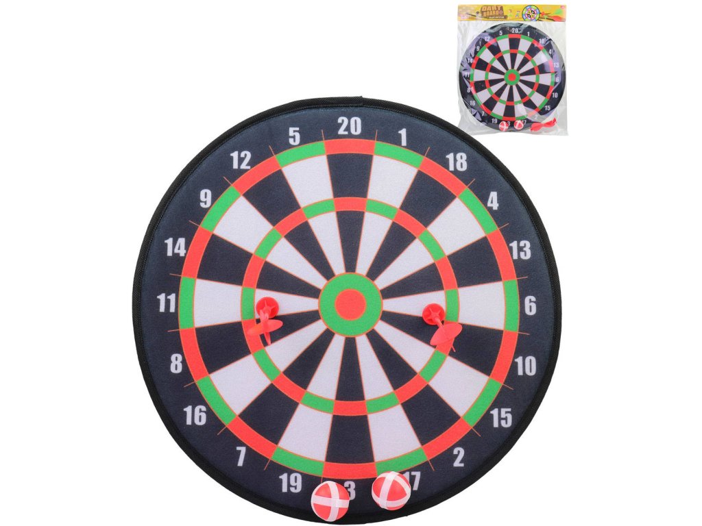 Dětský lehký terč se dvěma softovými balonky a dvěma šipkami na suchý zip. Možnost výběru hry - šipky či míčky. Baleno v sáčku.