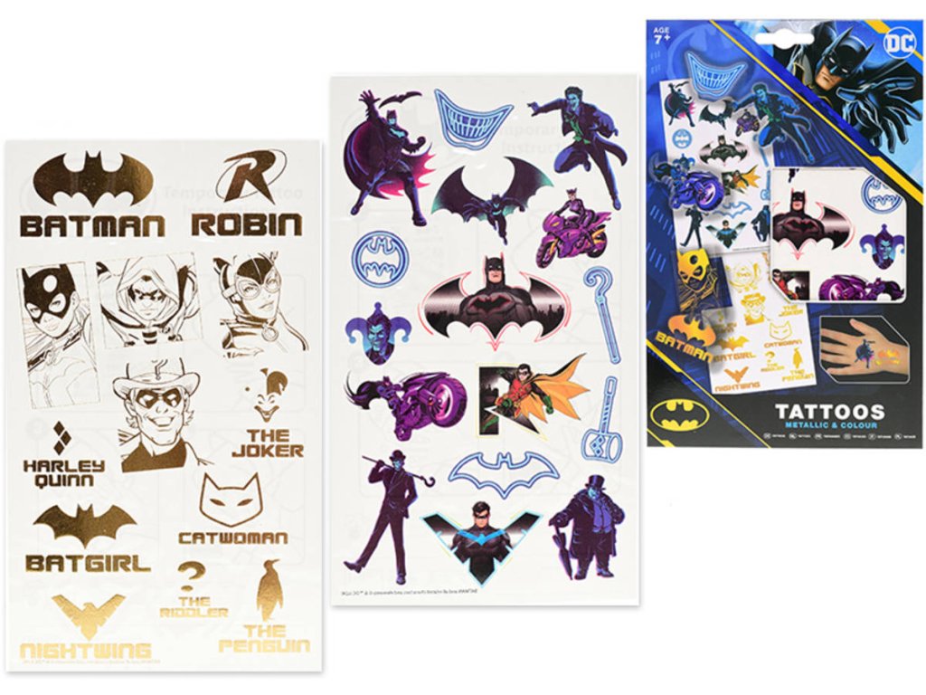 Přeneste hry svých dětí do světa Gothamu s touto vzrušující sadou metalických a barevných dočasných tetování s motivem Batmana! Tato sada je ideální pro malé fanoušky Temného rytíře, umožní jim vyjádřit se a pobavit se a zároveň je skvělým doplňkem ke kostýmům na tematické večírky.