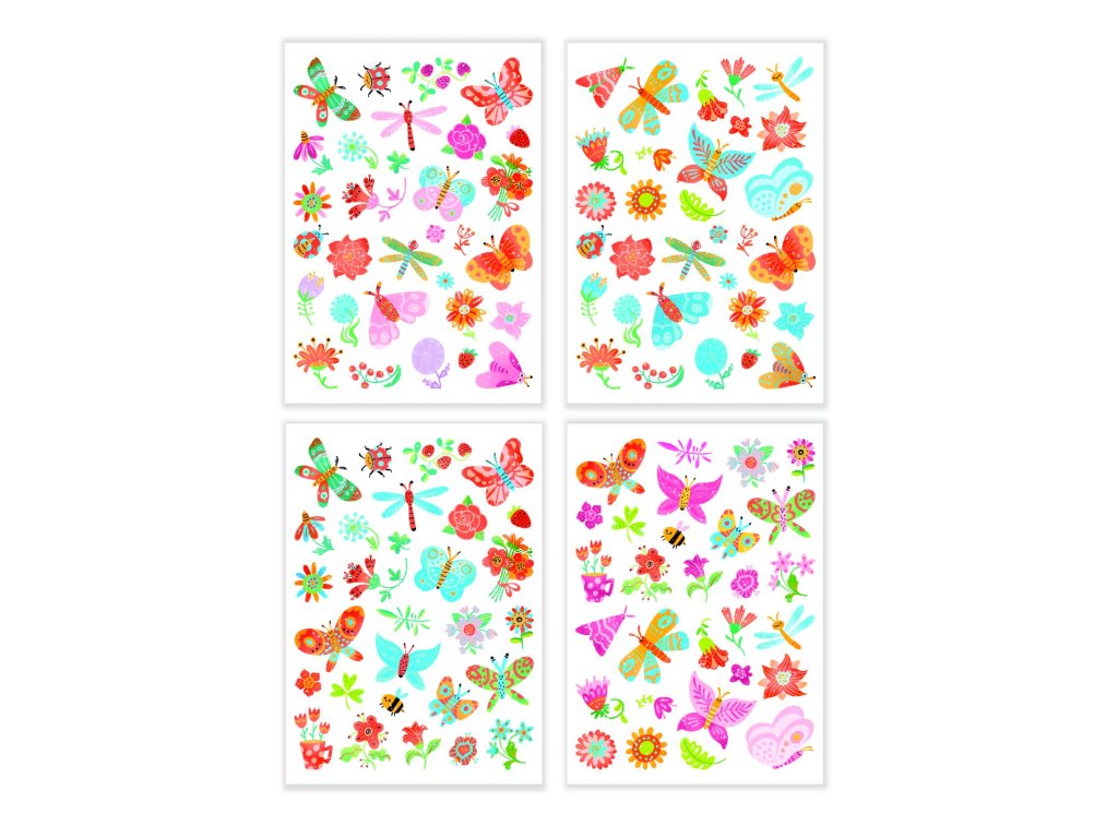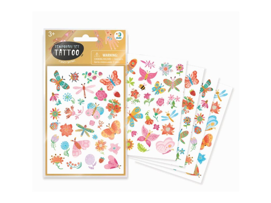 Ozdobte si své tělo krásným barevným tetováním. Vystřihněte vybraný obrázek. Přitiskněte ho na čistou a suchou pokožku Navlhčete ho vodou a po 30ti sekundách odstraňte papírek. Tetování lze odstranit mýdlem nebo olejíčkem. Vybrat si můžete z několika jarních motivů. Obsahuje 4 listy tetovaček.