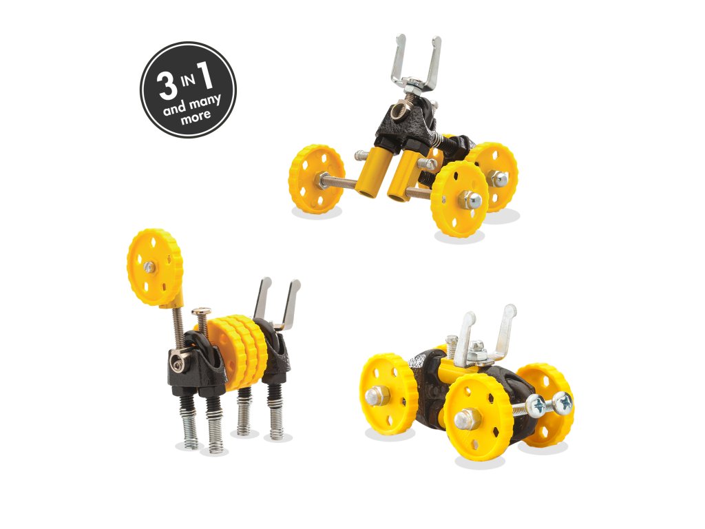 Zahřejte motor, je čas jít! BlazeBit je perfektní vozidlo s pohonem 4 kola pro vašeho robota Offbits. Díky sortimentu koleček a chytrých konektorů vybavíte svého robota na dobrodružství ve velkém stylu. Popusťte uzdu své fantazii. Tato sada umožňuje vytvoření tří modelů s dalšími nekonečnými možnostmi pro vaše vlastní kreativní nápady. Jedná se o hračku, která pomáhá mladým lidem růst v oblastech vědy, technologie, inženýrství, umění a matematiky. Hračky OffBits také podporují rozvoj jemné motoriky, prostorové představivosti, řešení problémů a nápadité hry. Co můžete postavit:BlazeBit, MotorBit, AnimalBit plus nekonečné množství jedinečných výtvorů, které můžete postavit pomocí své fantazie. Máte kolem sebe karton, šroubky nebo jiné zábavné materiály? Vylepšujte s předměty každodenní potřeby a vytvořte také své vlastní jedinečné vynálezy. Hlavní vlastnosti: obsahuje nářadí pro sestavení stavebnicekompatibilnost s každodenními předmětyrozvoj kreativity, jemné motoriky i logického myšlenívhodné od šesti let3 v 1 Ilustrační foto balení: