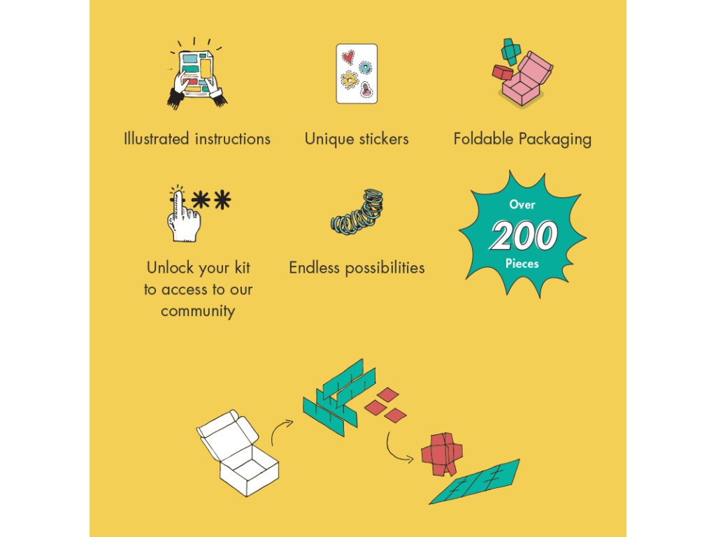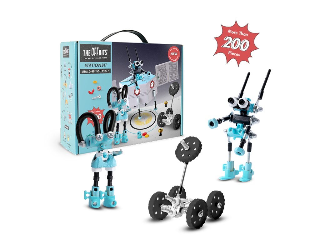 Postavte mezihvězdnou vesmírnou stanici! Prozkoumejte blízké i vzdálené planety se StationBit, který obsahuje více než 200 barevných matic, šroubů, tvarovaných kousků, samolepek a víceúčelové balení s nulovým odpadem, které se promění v součást herního zážitku a stane se vesmírným modulem. Popusťte uzdu své fantazii. Tato sada umožňuje vytvoření tří modelů s dalšími nekonečnými možnostmi pro vaše vlastní kreativní nápady. Jedná se o hračku, která pomáhá mladým lidem růst v oblastech vědy, technologie, inženýrství, umění a matematiky. Hračky OffBits také podporují rozvoj jemné motoriky, prostorové představivosti, řešení problémů a nápadité hry. Co můžete postavit:Astronauty SaturnBit, DroidBit a RoverBit plus nekonečné množství jedinečných výtvorů, které můžete postavit pomocí své fantazie. Máte kolem sebe karton, šroubky nebo jiné zábavné materiály? Vylepšujte s předměty každodenní potřeby a vytvořte také své vlastní jedinečné vynálezy. Hlavní vlastnosti: obsahuje nářadí pro sestavení stavebnicekompatibilnost s každodenními předmětyrozvoj kreativity, jemné motoriky i logického myšlenívhodné od osmi letvíce než 200 dílůvíceúčelové balení
