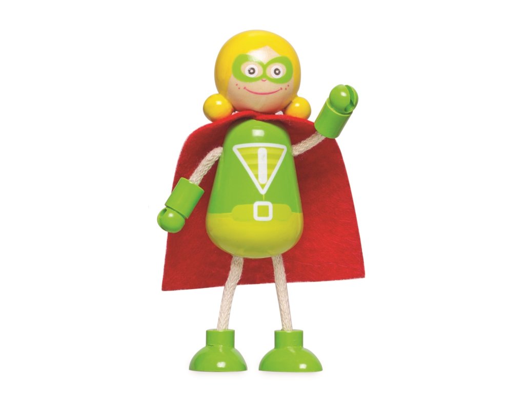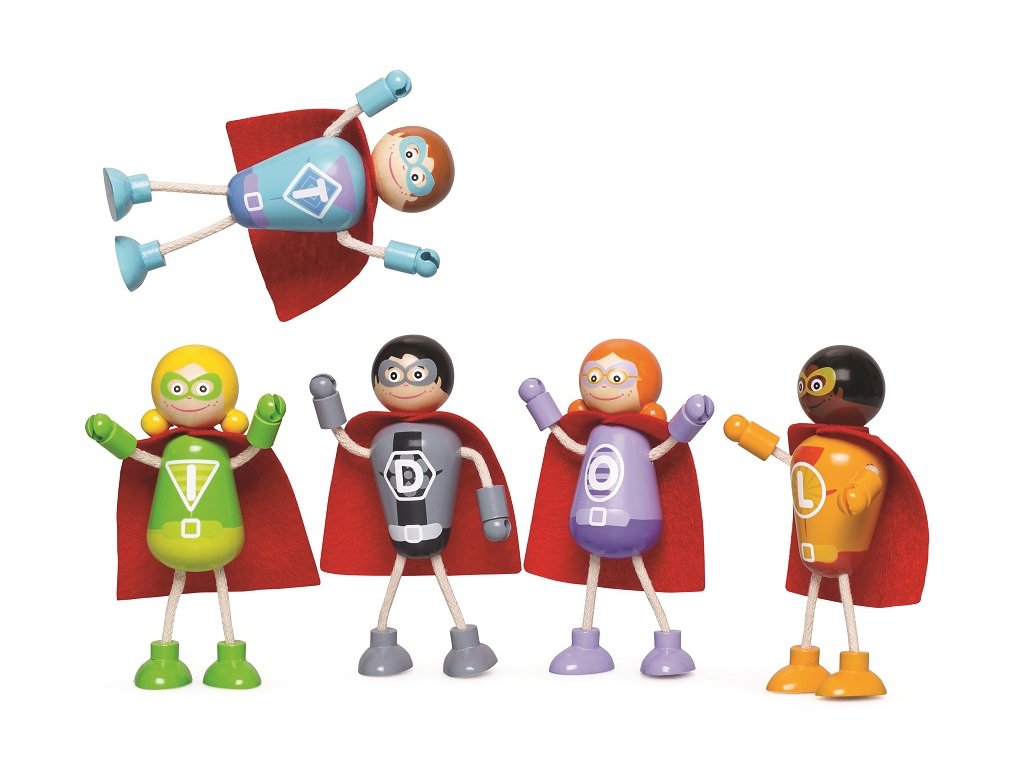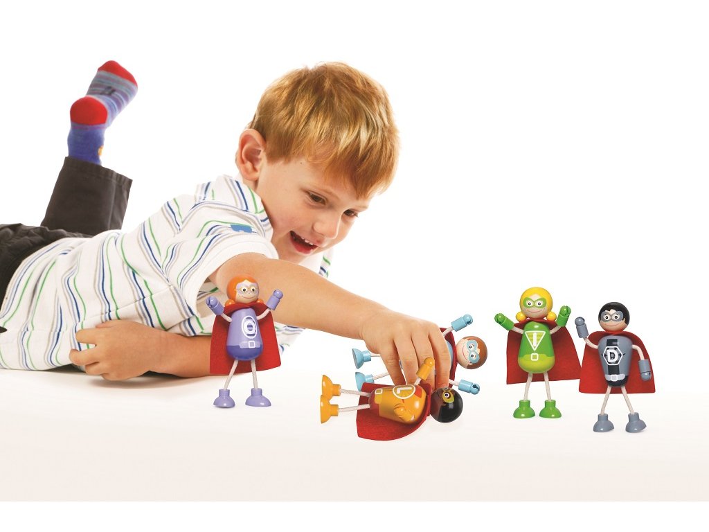 Je to pták? Nebo letadlo? Ne, je to tým pěti superhrdinů! Jsou připraveni zachránit svět ve svých uniformách s maskou a kápí. Mají ohebné a nastavitelné horní i dolní končetiny a každá postavička dokáže samostatně stát či sedět. Set zahrnuje postavičky žen i mužů. Skvělý způsob, jak děti podpořit v kreativní a představivé hře. Rozvíjí koordinaci ruka-oko, jemnou motoriku a zručnost. Vyrobeno z kvalitních materiálů z odpovědných zdrojů. Odpovídá evropské bezpečnostní normě. Hlavní vlastnosti: 5ks super postaviček s ohebnými a nastavitelnými končetinamipodporuje kreativní a představivou hrurozvíjí jemnou motoriku a zručnost