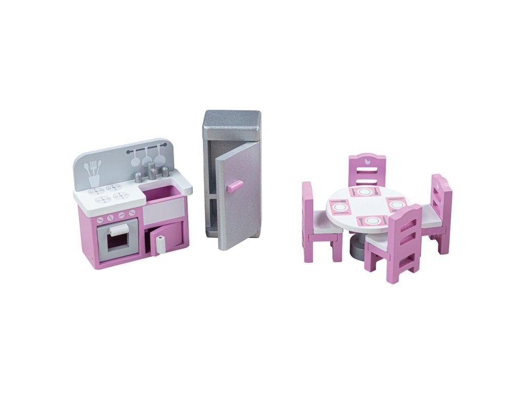 Krásný nábytek z bukového dřeva se bude hodit do každého domečku pro panenky, má prostě vše, co budou děti potřebovat k vytvoření kuchyně pro panenky, které jsou hladové po celém dni plném her. Set o devíti kusech zahrnuje chladničku/mrazničku, stůl a 4 židle, dva kuchyňské doplňky a kombinovaný sporák/dřez, ne kterém také naleznete nákupní seznam. Krásně detailní set se bude hodit do domečku pro panenky Tidlington (T0220) a jiné domečky standardní velikosti. Podporuje kreativní a představivou hru. Vyrobeno z kvalitních materiálů z odpovědných zdrojů. Odpovídá evropské bezpečnostní normě. Skládá se z 9 dílů. Hlavní vlastnosti: set o devítí kusech chladnička/mraznička, stůl a 4 židle, dva kuchyňské doplňky, kombinovaný sporák/dřez, nákupní seznam podporuje kreativní a představivou hru