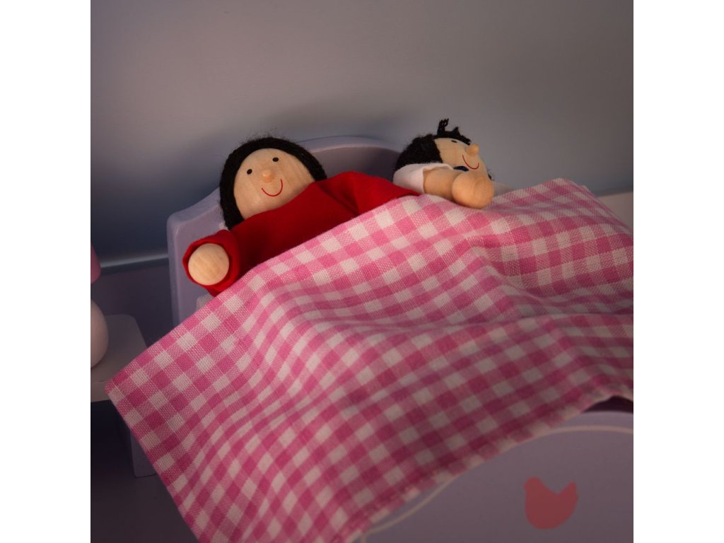Krásný nábytek z bukového dřeva se bude hodit do každého domečku pro panenky, má prostě vše, co budou děti potřebovat k vytvoření ložnice pro panenky unavené po celém dni plném her. Set o devíti kusech zahrnuje dvojlůžko, skříň, židli, 2 noční stolky, 2 lampičky a 2 kusy „oblečení“, které se vejdou do škříně. Postel má také své lůžkoviny, které panenku udrží přes noc v teple! Krásně detailní set se bude hodit do domečku pro panenky Tidlington (T0220) a jiné domečky standardní velikosti. Podporuje kreativní a představivou hru. Vyrobeno z kvalitních materiálů z odpovědných zdrojů. Odpovídá evropské bezpečnostní normě. Skládá se z 9 dílů. Hlavní vlastnosti: set o devíti kusechdvojlůžko, skříň, židle, 2 noční stolky, 2 lampičky a 2 kusy „oblečení“podporuje kreativní a představivou hru