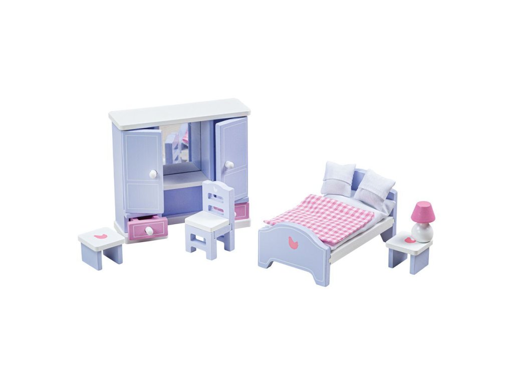 Krásný nábytek z bukového dřeva se bude hodit do každého domečku pro panenky, má prostě vše, co budou děti potřebovat k vytvoření ložnice pro panenky unavené po celém dni plném her. Set o devíti kusech zahrnuje dvojlůžko, skříň, židli, 2 noční stolky, 2 lampičky a 2 kusy „oblečení“, které se vejdou do škříně. Postel má také své lůžkoviny, které panenku udrží přes noc v teple! Krásně detailní set se bude hodit do domečku pro panenky Tidlington (T0220) a jiné domečky standardní velikosti. Podporuje kreativní a představivou hru. Vyrobeno z kvalitních materiálů z odpovědných zdrojů. Odpovídá evropské bezpečnostní normě. Skládá se z 9 dílů. Hlavní vlastnosti: set o devíti kusechdvojlůžko, skříň, židle, 2 noční stolky, 2 lampičky a 2 kusy „oblečení“podporuje kreativní a představivou hru