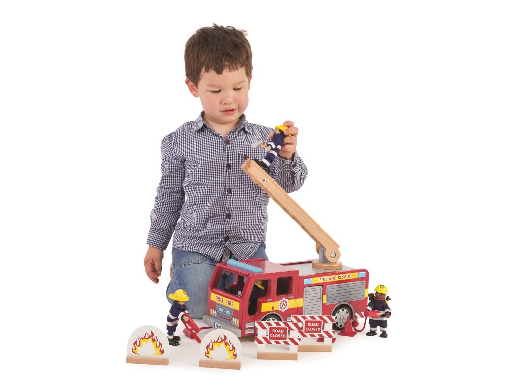 S tímto dřevěným hasičským autem budou děti zapáleny do hry plné představivosti. Perfektní hračka pro každého nadšence či nastávajícího hasiče, set obsahuje vysouvací žebřík a dvoje postranní dveře. Tyto dveře jsou otevíratelné, střecha je oddělitelná a hadice lze připojit zezadu! Velmi detailní hračka, díky které budou děti zapáleny v hodinách představivé hry. Kompatibilní s Tidlo Dřevěné postavičky hasičů (T0117) – lze dokoupit zvlášť. Rozvíjí koordinaci ruka-oko, jemnou motoriku a zručnost. Podporuje v kreativní a představivé hře. Vyrobeno z kvalitních materiálů z odpovědných zdrojů. Odpovídá evropské bezpečnostní normě. Hlavní vlastnosti: vysouvací žebřík, otevíratelné dveře, oddělitelná střecha, odpojitelná hadicedetailní realistická hračkapodporuje kreativitu a představivostrozvíjí jemnou motoriku