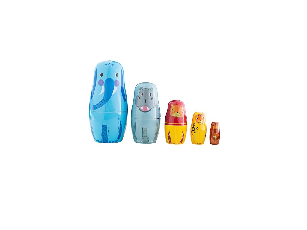 Láskyplně malované figurky matrjoška v podobě exotických zvířátek. Menší zvířátka se podle velikosti postupně schovávají do sebe. Tyto panenky se snadno uprostřed otevírají, což je skvělá praxe pro koordinaci ruka-oko a jemné motorické dovednosti. Figurky Matrjošky vyzařují své jedinečné kouzlo a jsou roztomilé na pohled. Lákavý poutač s velkým studijním potenciálem pro Váš dětský pokoj. Hlavní vlastnosti: lákavý poutač s velkým studijním potenciálemrozvíjí koordinaci ruka-oko a jemné motorické dovednosti