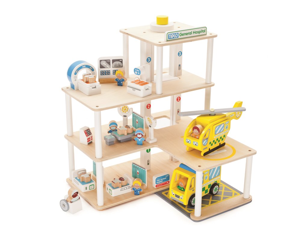 Tři poschodí plné vybavení, které Vám pomohou vyléčit oblíbené postavičky. Tento třiceti dílný set obsahuje záchranný vrtulník, sanitku, lůžka, lůžkové clony, magnetickou rezonanci, operační světla a lůžka, EKG monitor, výtah, přistávací plochu a parkoviště/plochu pro příjezd sanitky. Dále také rentgen, postavičky lékařů, sestřiček, invalidní vozík, nosítka a pět pacientů. Podporuje představivost, koordinaci ruka-oko, jemnou motoriku a zručnost. Vyrobeno z kvalitních materiálů z odpovědných zdrojů. Odpovídá evropské bezpečnostní normě. Hlavní vlastnosti: 3 poschodí30 kusů příslušenstvípodporuje dětskou představivost, zručnost a jemnou motoriku