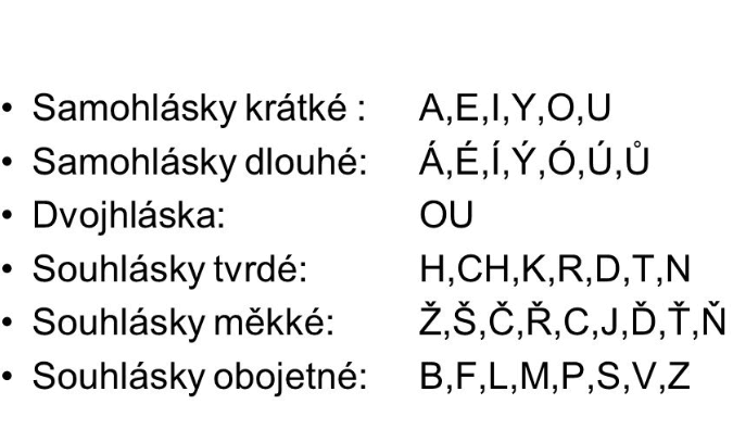 - Trvání – rozlišujeme krátké a dlouhé samohlásky