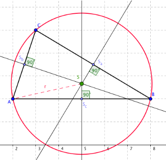 Výsledkem bude pětiúhelník, který má vepsaný kruh. Střed vepsaného kruhu je střed kruhu původního.