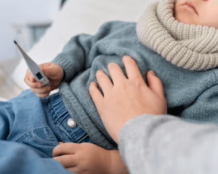 Horečka: Mnoho dětí s sedmou nemocí zažije horečku, která může být mírná až středně vysoká.