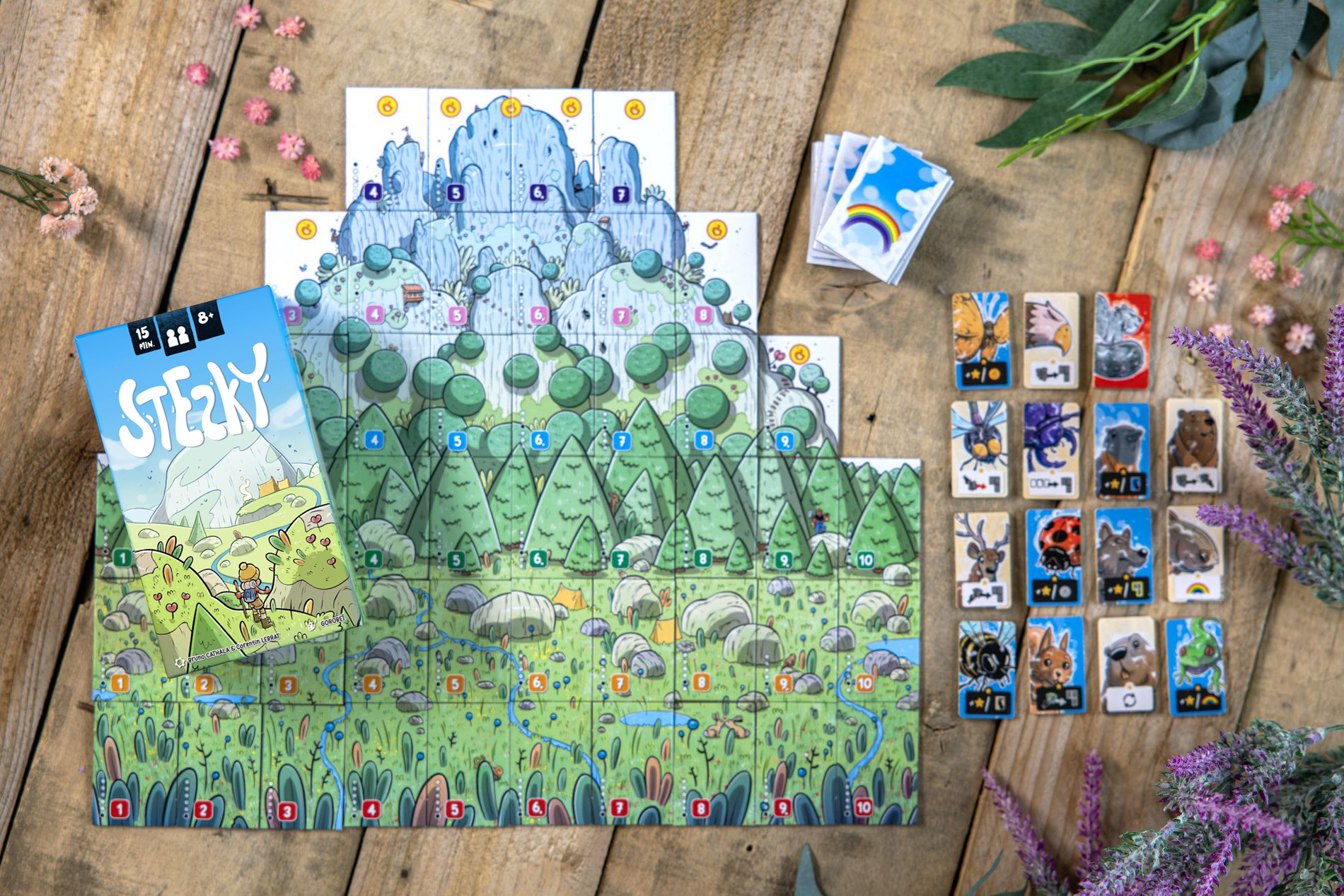 Desková hra Stezky nabízí ve své maličké krabičce výlet do hor, kde budete kousek po kousku odhalovat malebnou krajinu. Jde o hru pro dva hráče, v níž budete po tazích vybírat destičky a skládat z nich obrázek scenérie.