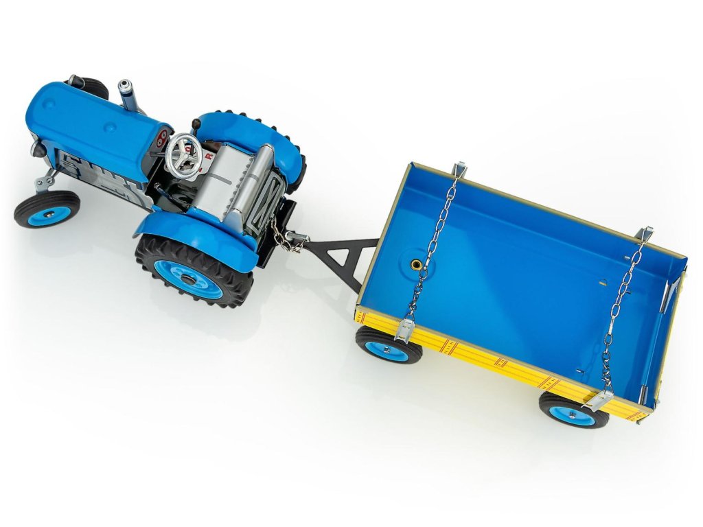 Kovový traktor ZETOR s valníkem na klíček s opravdovou funkční převodovkou se 3 rychlostmi dopředu, zpátečkou a neutrálem.