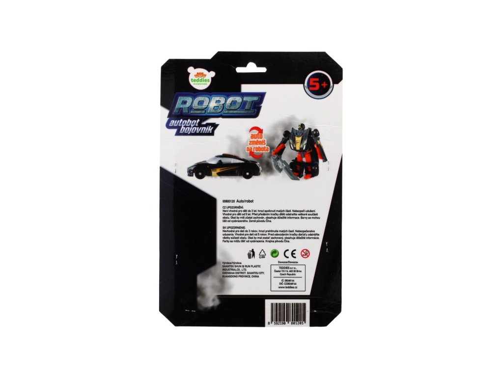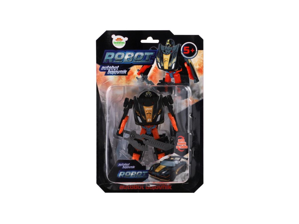 Transformer auto/robot plast 14cm černý na kartě 17x26x6cm