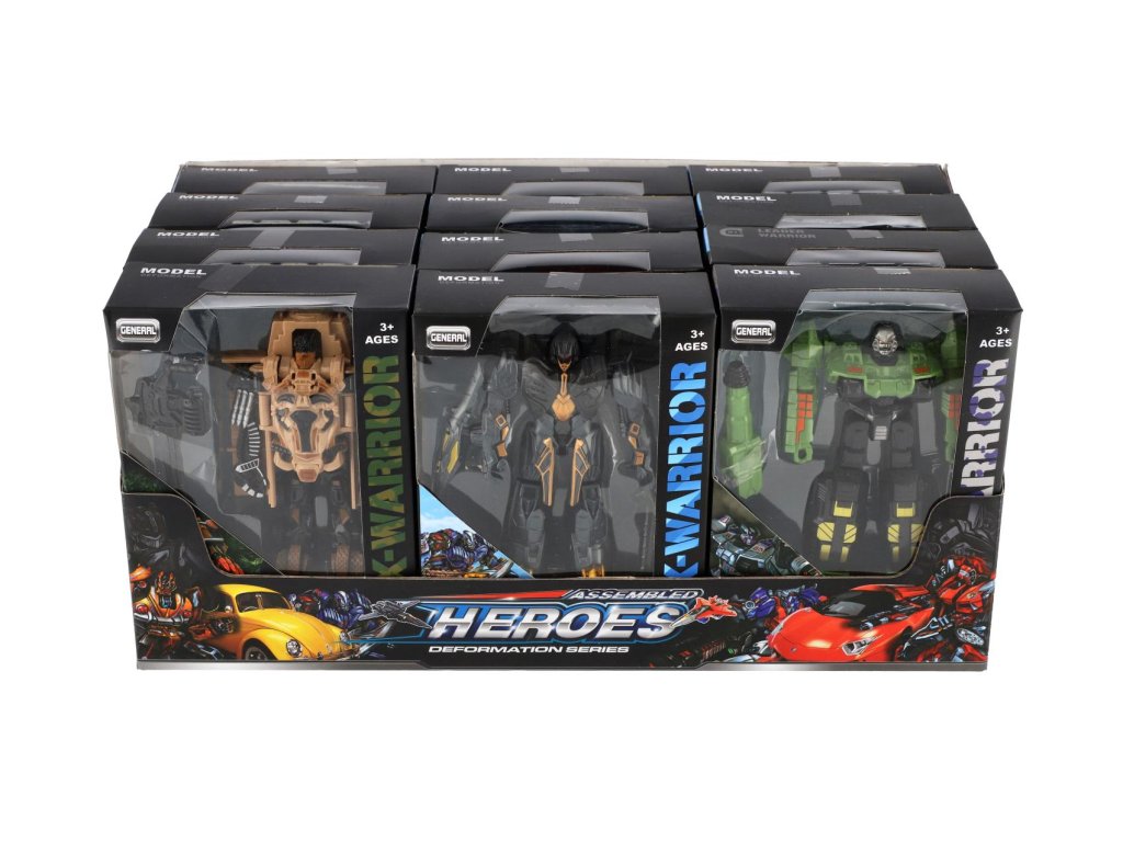 Transformer auto/robot plast 14cm mix druhů v krabičce 13x18x5cm 12ks v boxu