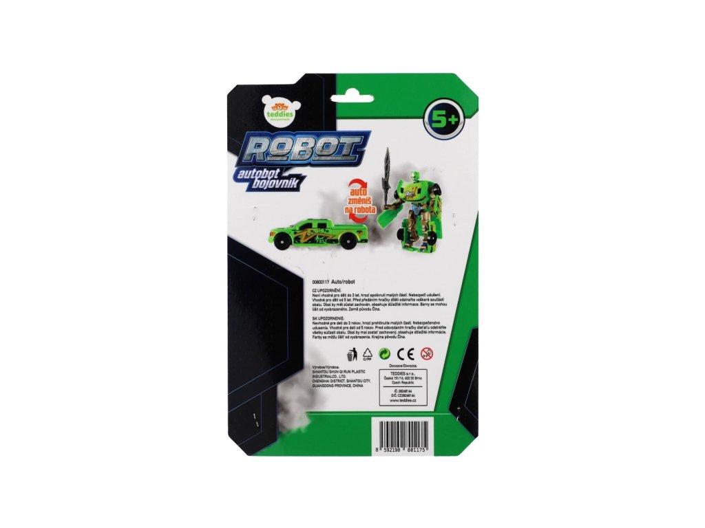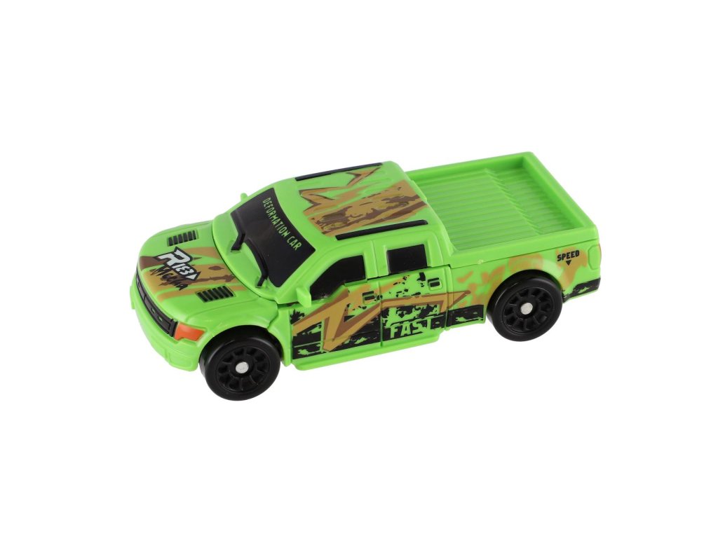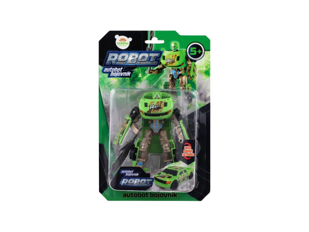 Transformer auto/robot plast 14cm zelený na kartě 17x26x6cm