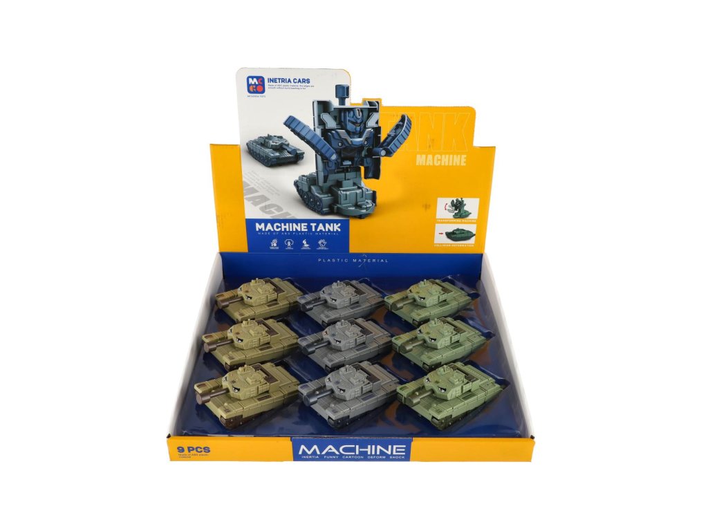 Transformer tank/robot plast 14cm na setrvačník 3 barvy 9ks v boxu
