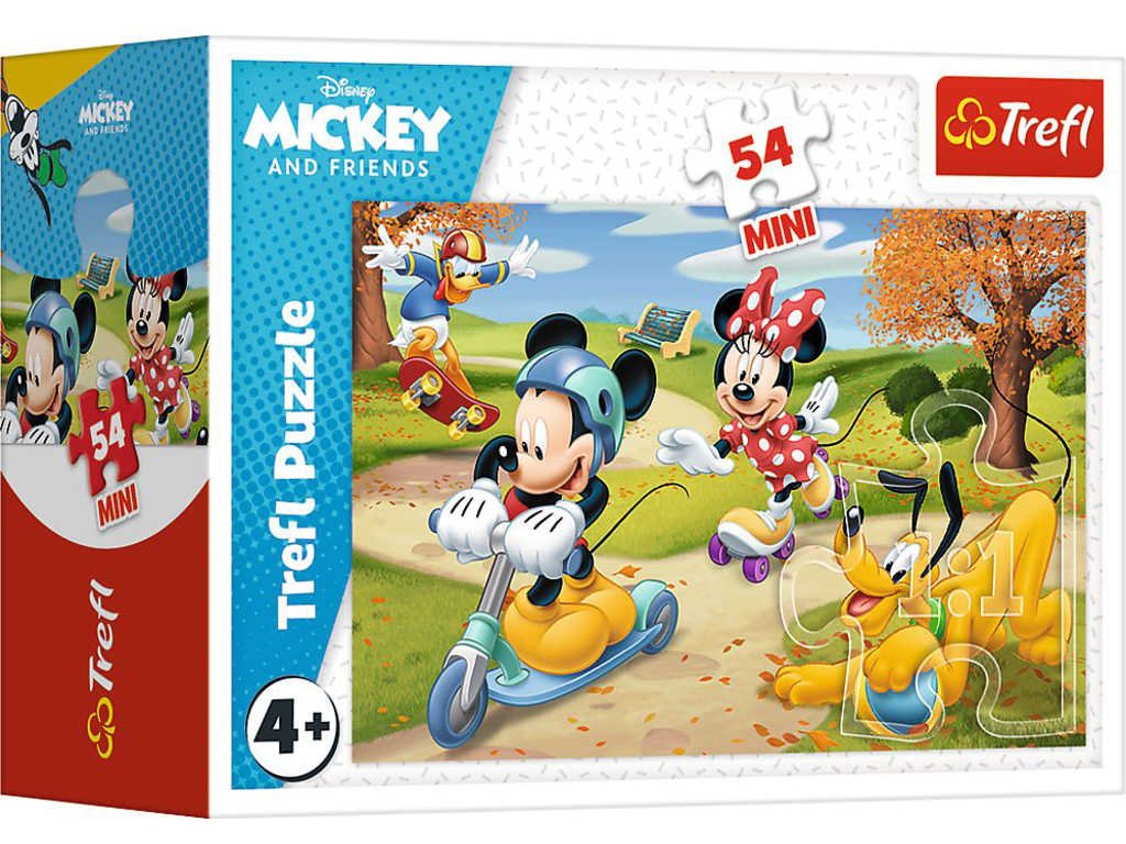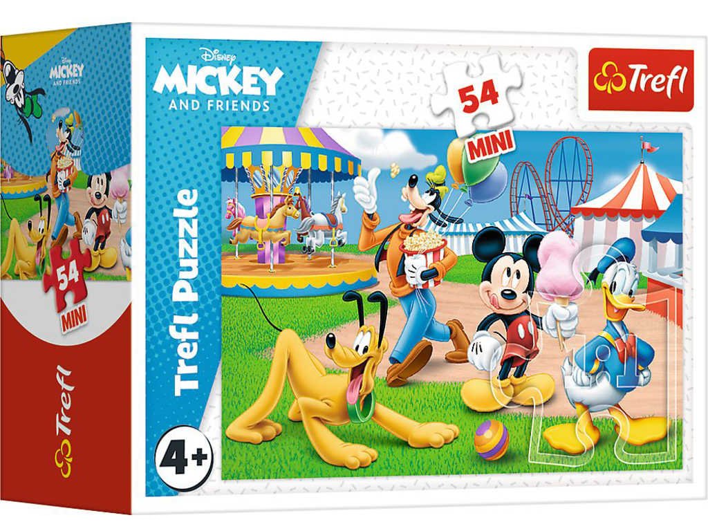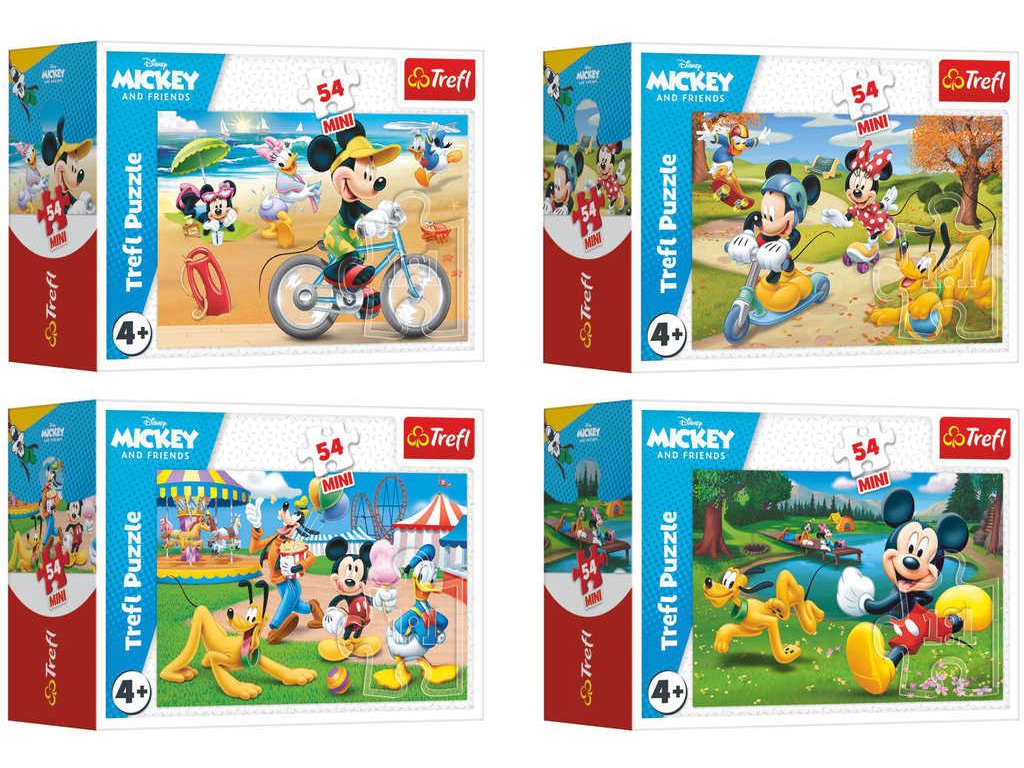 TREFL 54190 - Myšák Mickey Mouse: Den s přáteli - Disney mini puzzle s motivy myšáka Mickeyho a jeho přátel, ve čtyřech variantách provedení.