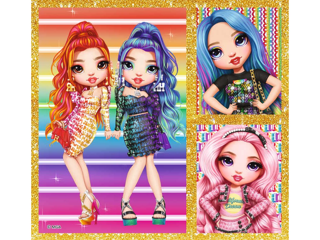 Zabav se s úžasnými Rainbow High. Puzzle mají 200 dílků celkem, ale skládají se z 10ti různých motivů a různých počtů puzzlí. Některé budou brnkačka (20ks), ale další už budou šložitější (35ks nebo 48ks). Díky různému potisku ze zadní strany (kolečka, hvězdičky, srdíčka ...), je možné jednotlivé obrázky od sebe velmi snadno odlišit odlišit.
