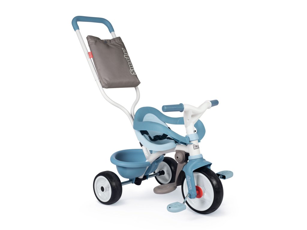 Šlapací tříkolka má kovový rám, odnímatelnou vodící tyč, bezpečnostní ochranný rám a pás, možnost zablokování šlapadel, výklopný plastový košík, nastavitelné ergonomické sedadlo na 2 pozice, plastová kolečka s tichou úpravou. Praktická taška na vodící tyči. Nosnost 50 kg. Rozměry 68 x 101 x 52 cm.