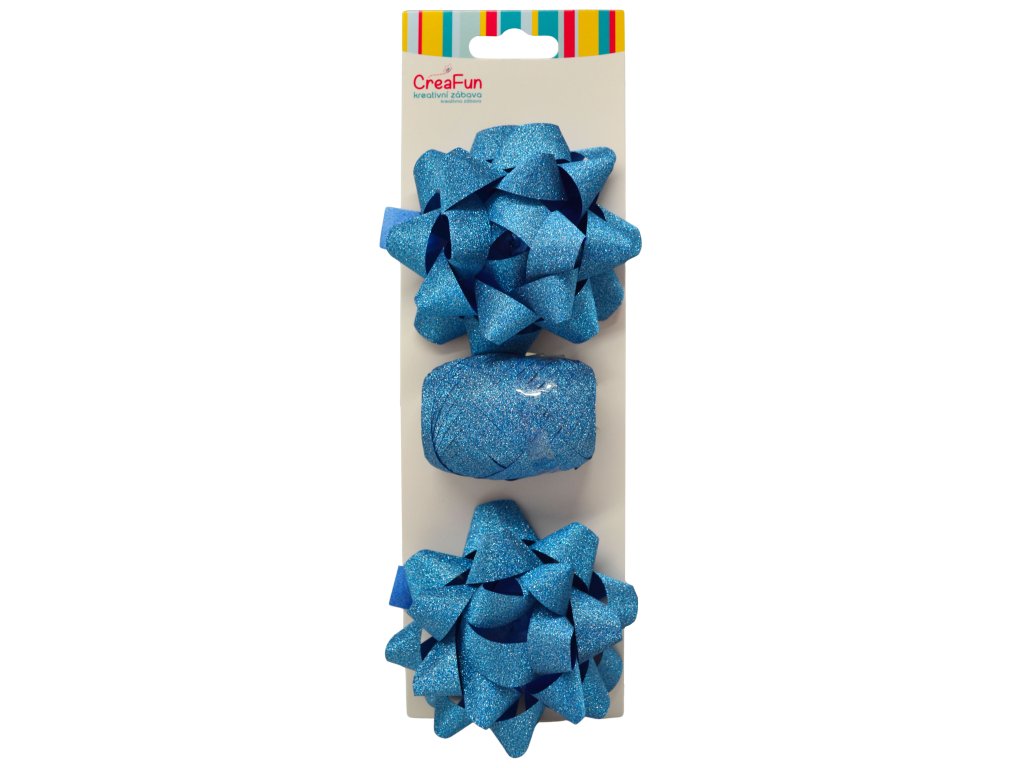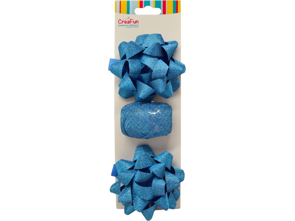Třpytivá dárková balicí sada, modrá (stuha 10 m + 2x mašle hvězda 9 cm)