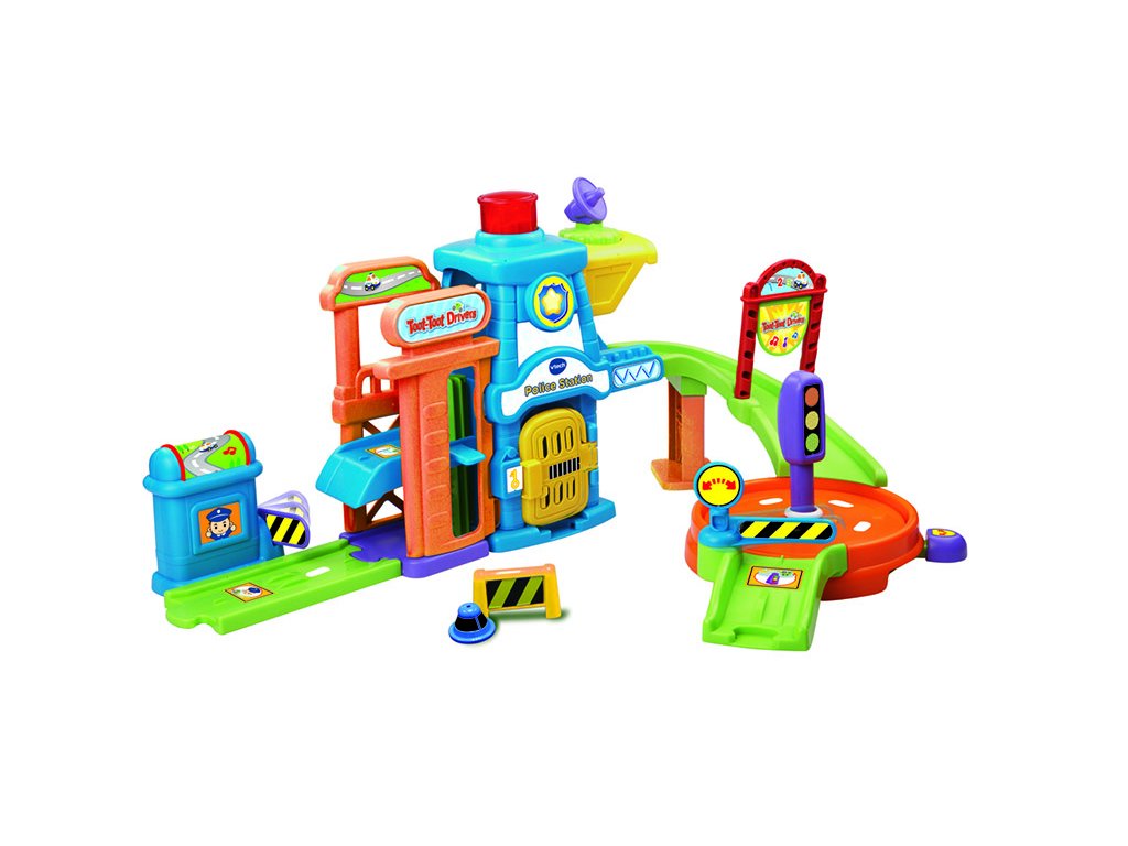 Interaktivní hračka s jedním Tut Tut mluvícím autíčkem – policie.Policejní stanice umožňuje: sestavit desítky různých variant budovy a cest, povídání a různé reakce Tut Tut autíček na pěti různých místech dráhy pomocí SmartPoint bodů, otevírání dveří od vězení a otáčet radarem, zvedat závoru a používat výtah pro autíčka Tut Tut (podporuje rozvíjení jemné motoriky). Používání policejního alarmu, umisťovat přenosné dopravní značení, používat kruhový objezd se semaforem, autíčko zná desítky roztomilých frází, zazpívá 3 písničky a zahraje 6 melodií. Rodiče také ocení vysokou odolnost hračky proti mechanickému poškození i například automatické vypínání hračky, což zajistí vyšší životnost baterie. 2xAAA baterie je součástí výrobku.