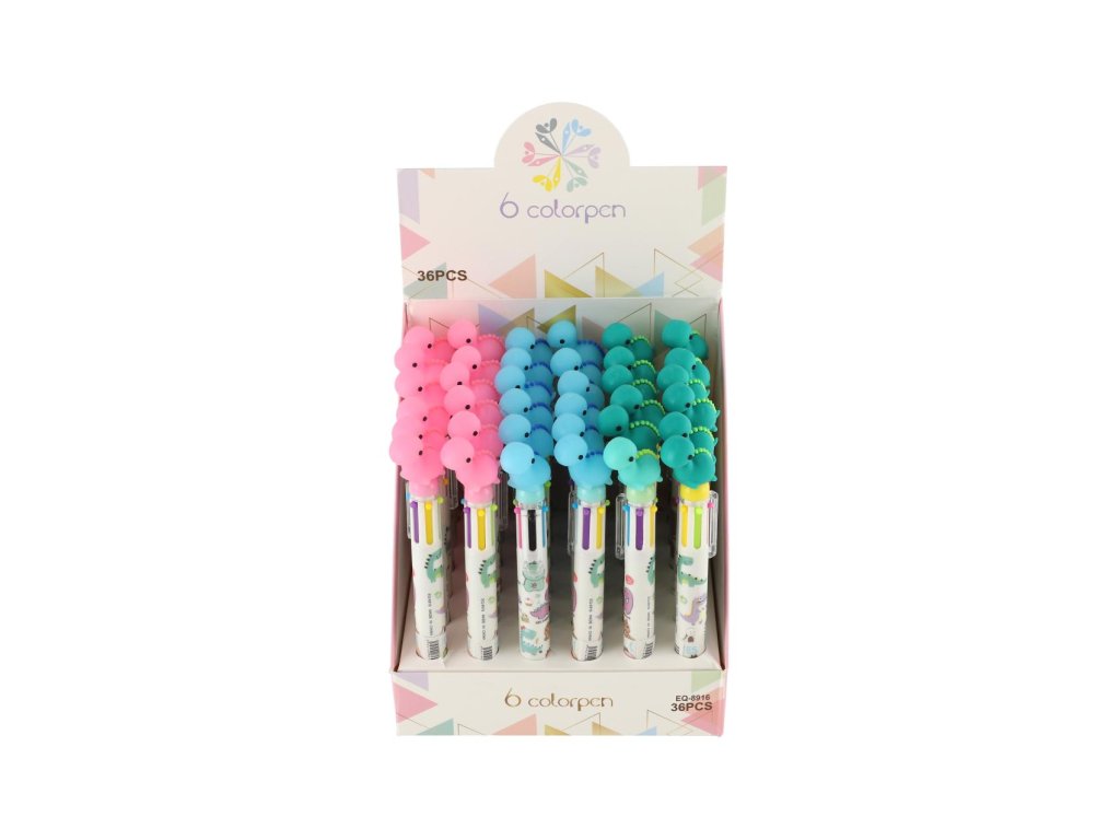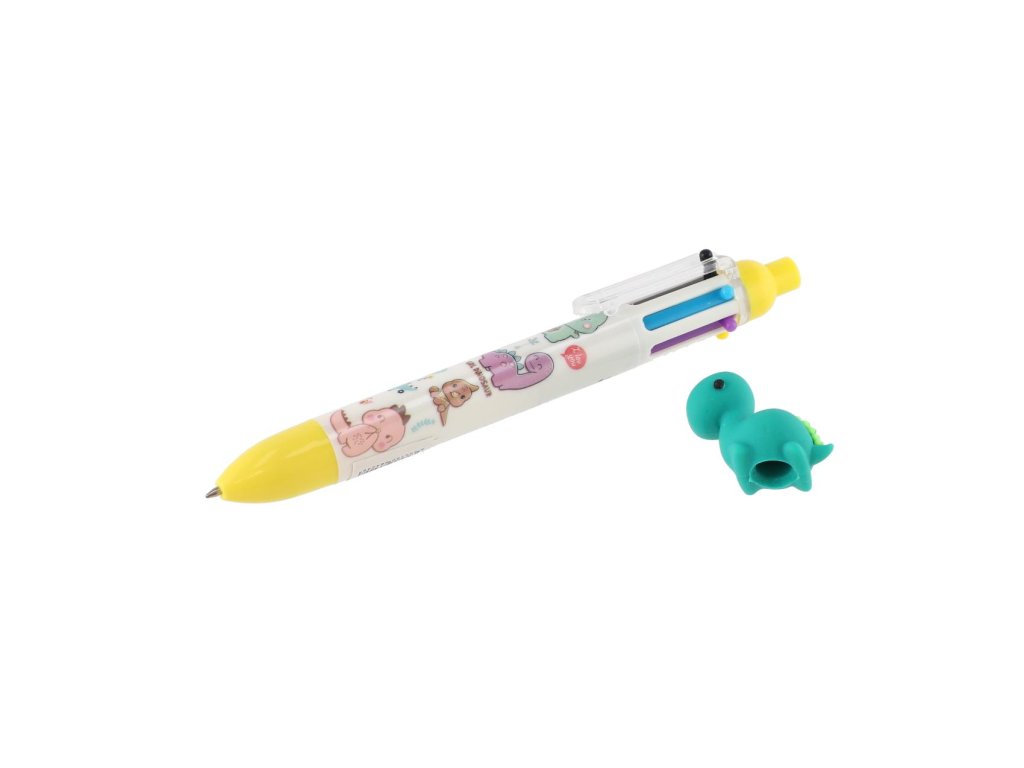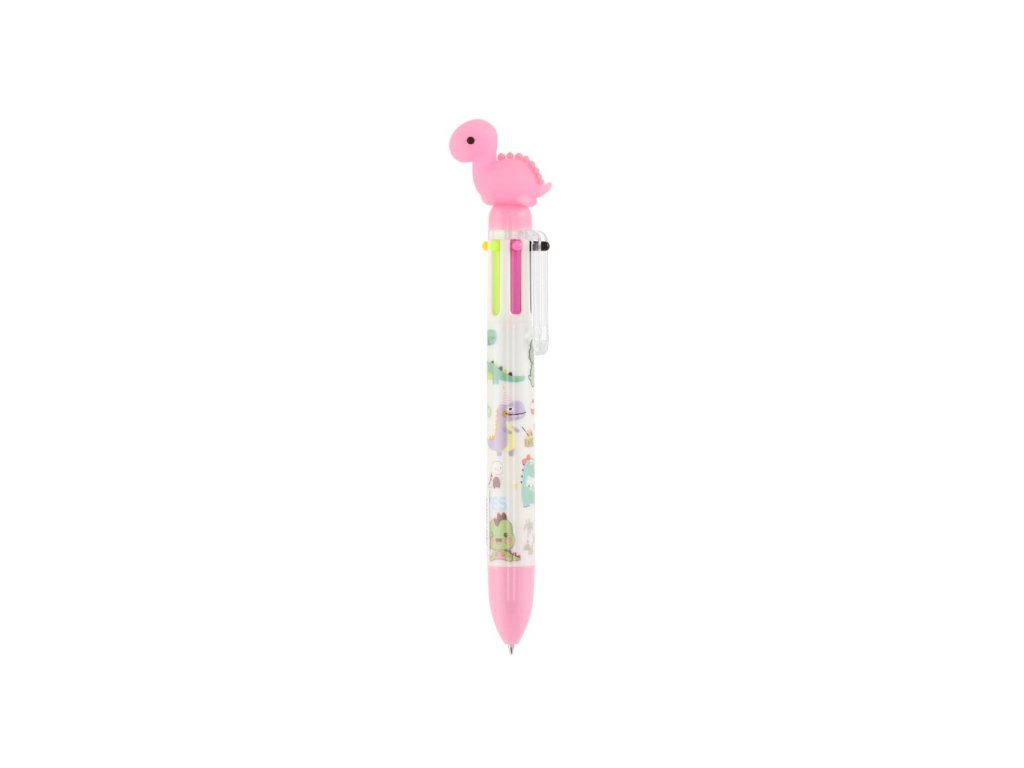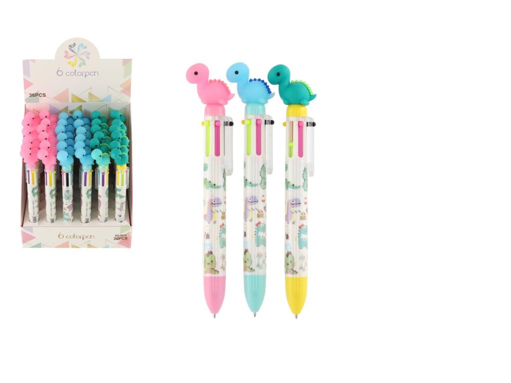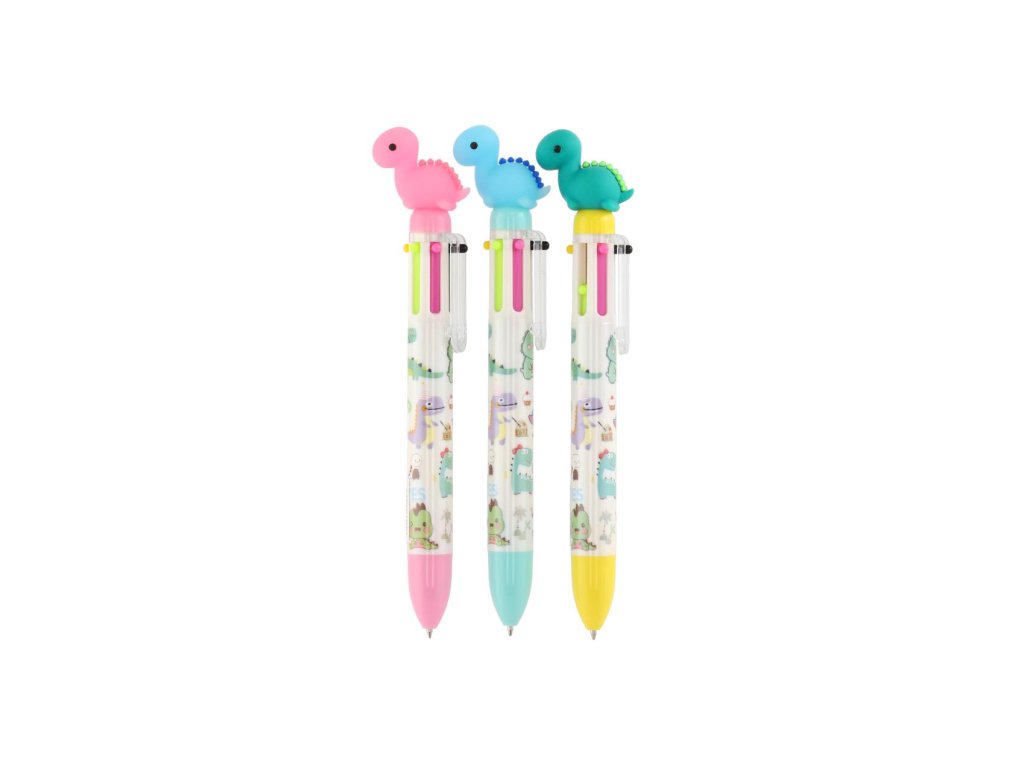 6ti barevná propiska s motivem dinosaura je skvělým pomocníkem nejen pro školáky. Změň si kdykoli barvu náplně přepnutím barvy jiné. Velikost pera je 17 cm. Není hračka.