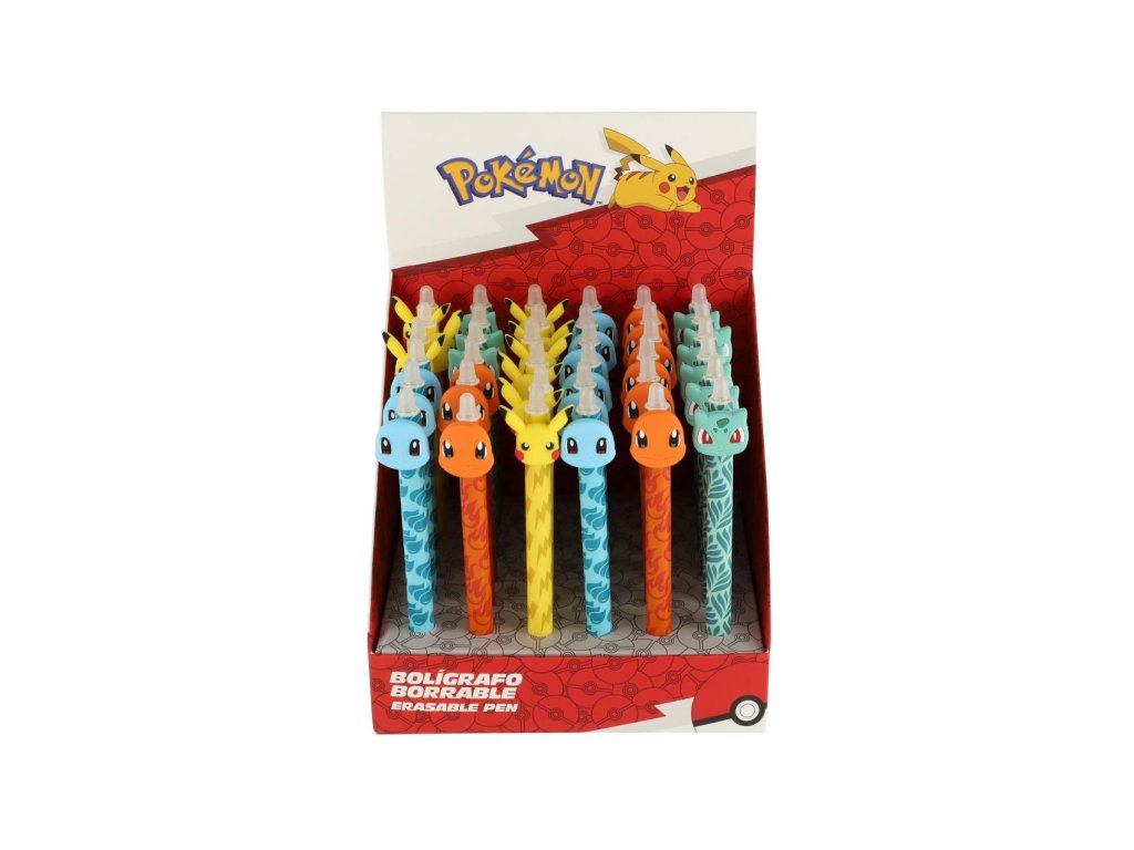 Gumovatelné pero v licenci Pokémon. Konec chybám a škrtání v sešitech. Prostě je vymaž a přepiš. Pevná pryž na konci pera a jedinečné složení inkoustu zaručuje jednoduché a opakované gumování. Stiskací mechanika s integrovanou gumou.